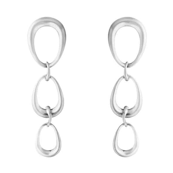 Deze Georg Jensen Offspring oorhangers voelen net zo prettig aan als een rustige avond thuis op de bank. De drie organisch gevormde zilveren schakels bewegen soepel mee en dragen licht en comfortabel. Hun zachte, afgeronde vormen passen moeiteloos bij een ontspannen setting, terwijl ze toch dat beetje extra elegantie toevoegen. Ontwerpster Jacqueline Rabun liet zich inspireren door de verbondenheid tussen mensen. De verschillende groottes van de schakels symboliseren relaties die elkaar versterken. Een subtiele, stijlvolle keuze voor wie houdt van sieraden die zowel betekenisvol als prettig draagbaar zijn.