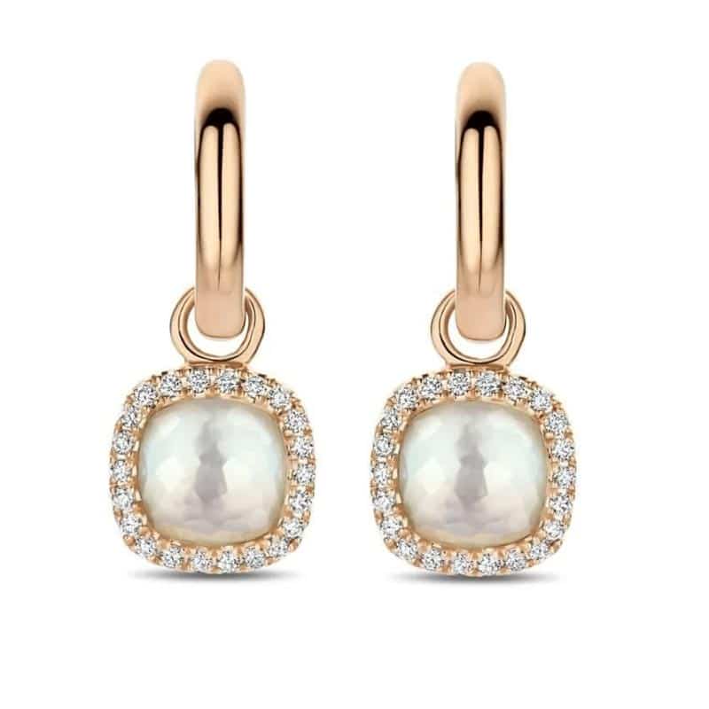 Perfect passend bij de feestdagen zijn deze Tirisi-oorhangers. In 18 karaat roségoud met witte kwarts en diamanten brengen ze zachte elegantie samen met een moderne luxe-uitstraling. De witte kwarts geeft een heldere, rustige glans, mooi in balans met de warme tint van het roségoud. Diamanten zorgen voor een subtiel vleugje schittering dat het ontwerp extra allure geeft.