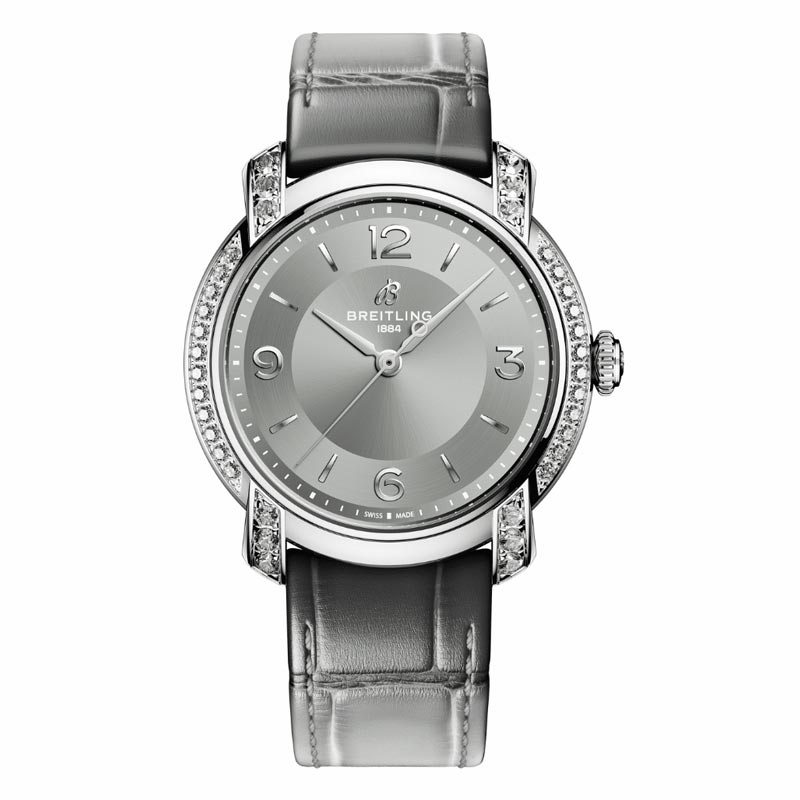 In de jaren ‘40 introduceerde Willy Breitling de Premier-lijn en verhief hij het chronograafhorloge van een instrument van precisie tot een uiting van stijl. Later werd zijn stijlvolle en charismatische vrouw Beatrice zijn muze en een bepalende kracht achter de creatieve koers van het merk. Ruim 80 jaar later zou Willy Breitling vast gelukkig zijn geweest met de nieuwe Lady Premier 36, die een tijdloze elegantie uitstraalt. Dit dameshorloge is subtiel doch luxueus, met schitterende diamanten op de kast en een stijlvolle, grijze leren band. Een perfecte balans tussen vrouwelijke finesse en technische topkwaliteit.