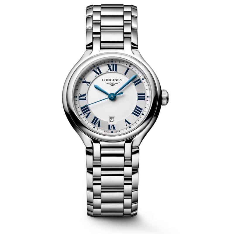 Het nieuwste model uit de Longines PrimaLuna-collectie straalt elegante, vrouwelijke verfijning uit. Het horloge heeft een minimalistische zonnestraalzilver wijzerplaat die tijdloos mooi blijft. Dit quartzmodel heeft een kast van 30 mm van edelstaal en toont de datum. Het is waterbestendig tot 30 meter en voorzien van krasbestendig saffierglas met meervoudige anti-reflecterende coating aan beide zijden. De edelstalen band sluit met een drievoudige veiligheidssluiting en een drukknopmechanisme.