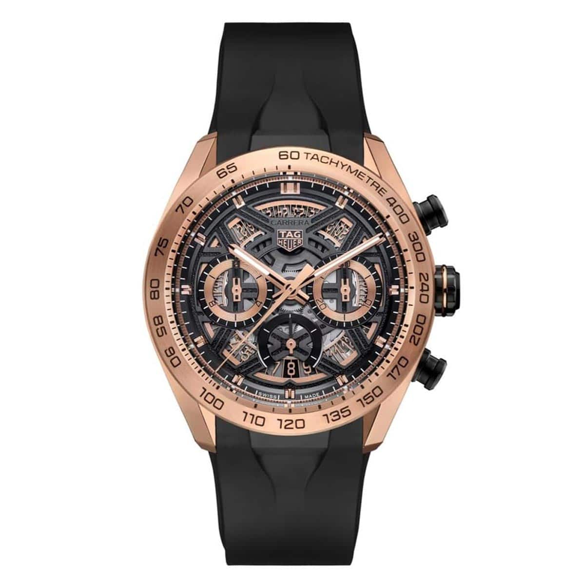 Wie tijdens de kerstdagen wordt verrast met de Carrera Chronograph Extreme Sport, zal waarschijnlijk even tijd nodig hebben om dit geschenk goed op zich in te laten werken. Dit horloge van TAG Heuer biedt door de opengewerkte wijzerplaat een blik op het automatische TH20-00 uurwerk dat de chronograaf aandrijft. Ook het design trekt de aandacht. Het horloge heeft een sportief, race-geïnspireerd design. Het opengewerkte wijzerplaatdesign met verfijnde NAC-afwerkingen en een gegranuleerd zwart centrum benadrukt de technische diepte van het horloge. Accenten van roségoud lichten op in de tellers, wijzers en indexen. De 44 mm kast, uitgevoerd in fijn geborsteld en gepolijst 18 karaat roségoud, toont aan de zijkant een uitgesproken architecturale vorm. De vaste tachymeter lunette en zwarte DLC-titanium kroon versterken het sportieve karakter. De geïntegreerde zwarte rubberen band met DLC-titanium vouwsluiting zorgt voor optimaal draagcomfort en zekerheid.