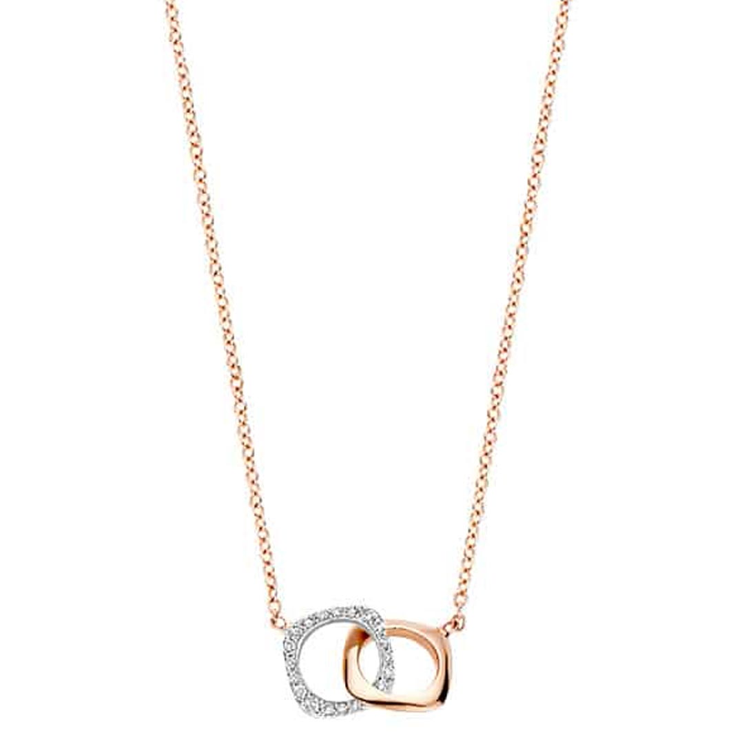 Dit Bigli-collier staat symbool voor de beste momenten in het leven. Het is een draagbare herinnering aan momenten die je lieten stralen en die je opnieuw beleeft tijdens het dragen. Het collier is onderdeel van de Elements-collectie en bevat dan ook twee vierkante elementen. De opengewerkte elementen vallen soepel in elkaar. In roségoud en witgoud met diamanten vormen beide elementen een vanzelfsprekend geheel.