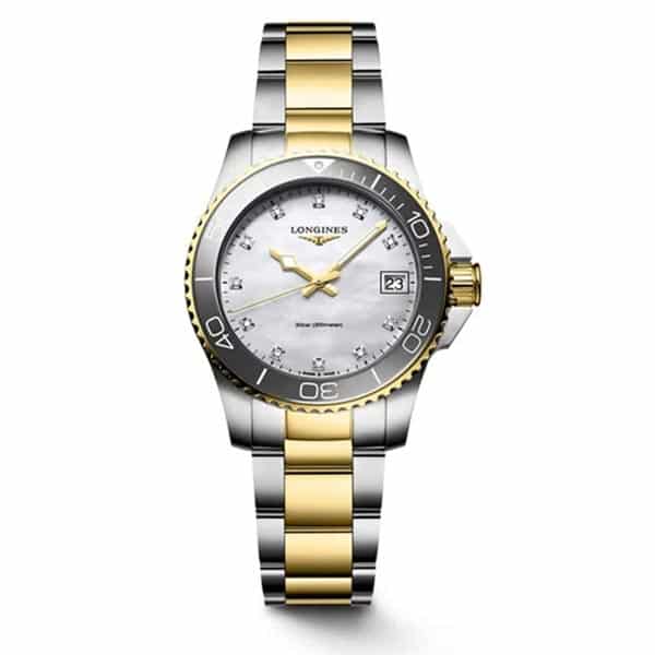 De Longines HydroConquest combineert prestatie en stijl. Geïnspireerd door de wereld van watersport, valt de lijn op door zijn gedurfde design. Kast en band zijn vervaardigd van edelstaal, maar krijgen door de PVD coating een luxueuze uitstraling. Tegelijkertijd valt de HydroConquest op door betrouwbaarheid. Het dameshorloge is waterbestendig tot 300 meter met een uni-directioneel roterende keramische lunette en geschroefde kroon. Duiken is dus geen probleem met dit horloge.