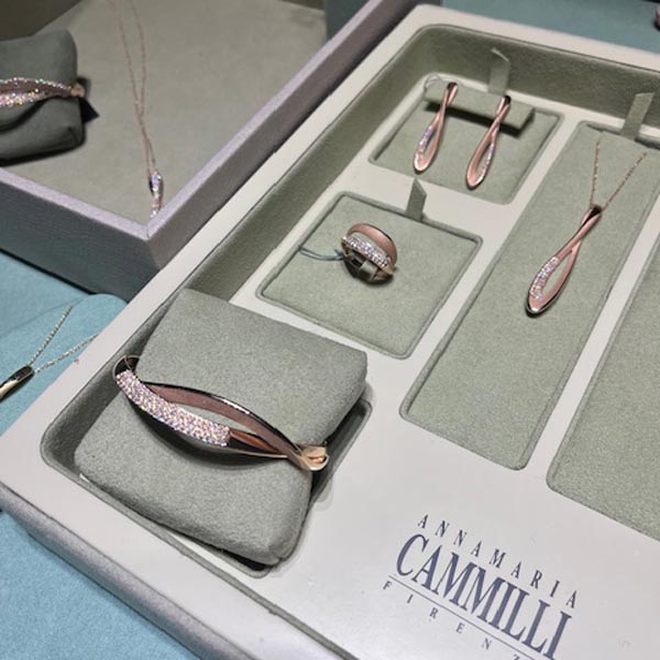 Het sieradenmerk Tirisi was ook een blikvanger op beurs. Het merk komt met een fantastisch nieuw systeem binnen de Milano collectie: ringen, oorhangers en colliers waarvan de edelsteen met een eenvoudige beweging kan worden verwisseld waardoor er een hele nieuwe look ontstaat.