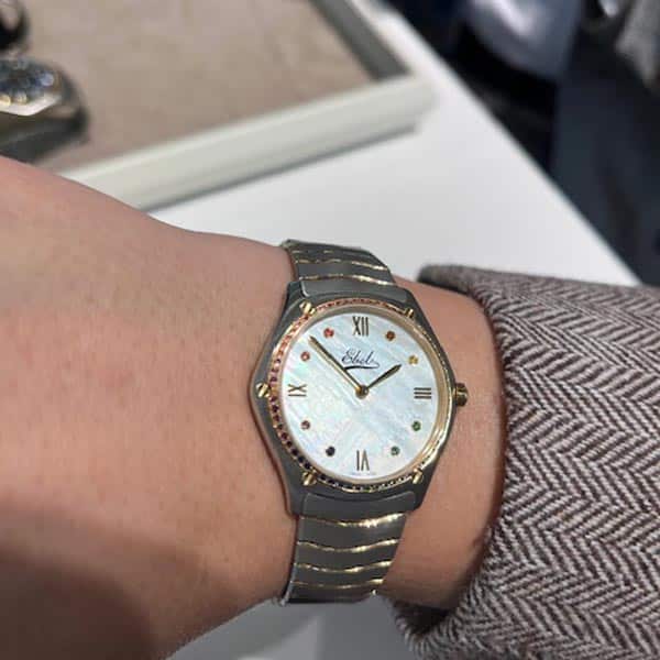 Een mooi voorbeeld hiervan zagen we bij Ebel. Het merk bestaat dit jaar 115 jaar en komt daarom met fantastische limited editions waaronder een chronograaf met een bol saffierglas. Deze zullen worden vervaardigd in een oplage van 115 stuks. Daarnaast komt het merk, naast hele mooie wijzerplaatkleuren waar ze enorm sterk in zijn, met een damesmodel waarop het oude logo van Ebel schittert en een rainbow bezel met verschillende soorten edelstenen; een echte eyecatcher!