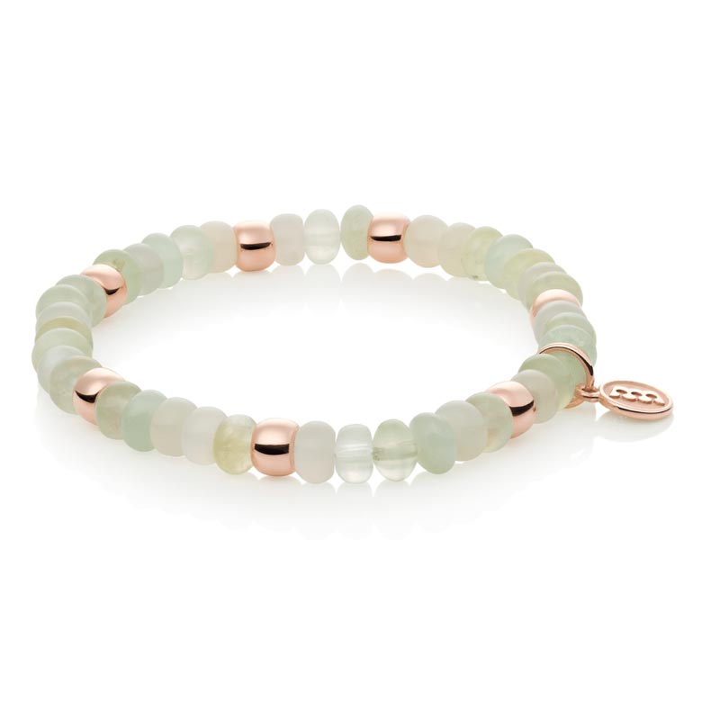Op zoek naar een armband die past bij de voorjaarsmode en met de luchtigheid waar het seizoen om vraagt? Dan biedt Bron hiervoor het perfecte sieraad in de vorm van een roségouden Flex armband met maansteen en prehniet. Het zachte roségoud vormt een harmonieuze basis voor de betoverende glans van maansteen en de frisse, groene tint van prehniet. Samen creëren ze een natuurlijke, serene uitstraling in een armband die bovendien prettig draagbaar is. Het flexibele Reflex-ontwerp sluit soepel om de pols en beweegt moeiteloos met de drager mee.