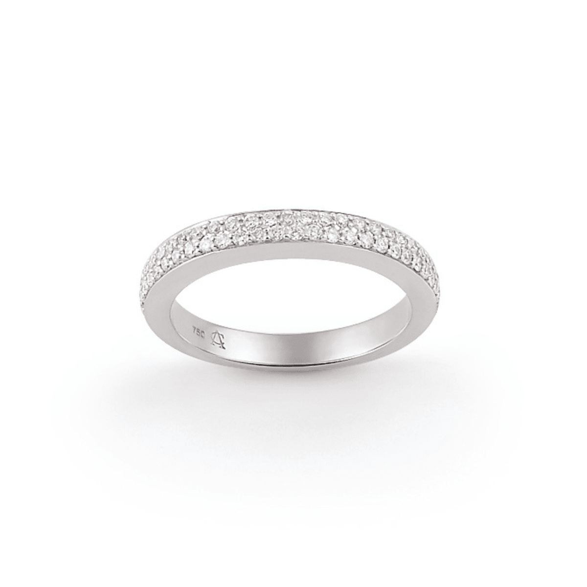 De Amici ring van Al Coro combineert verfijnde elegantie met tijdloos design. Deze ring is vervaardigd uit 18 karaat witgoud en verfraaid met schitterende briljant geslepen diamanten met een totaalgewicht van 0,43 ct. De koele glans van het witgoud benadrukt de zuivere schittering van de diamanten en creëert een harmonieus en luxueus geheel.