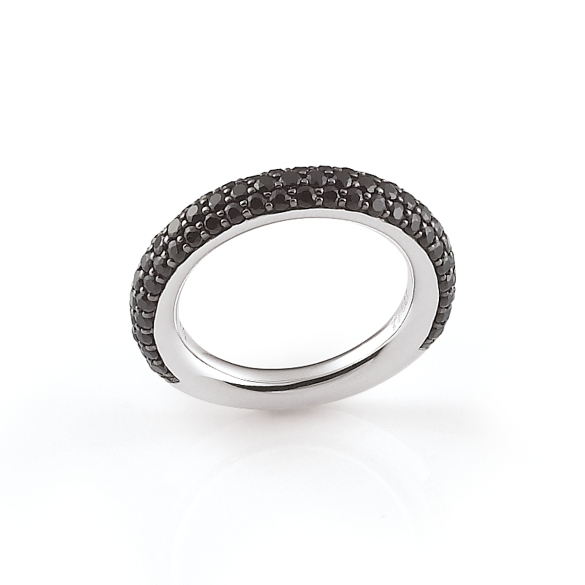 De Amori ring van Al Coro straalt ingetogen luxe en kracht uit. Dit verfijnde juweel is vervaardigd uit 18 karaat witgoud en gezet met een indrukwekkende zwarte saffier van 2,62 karaat. De diepe, mysterieuze glans van de edelsteen contrasteert prachtig met de koele schittering van het witgoud, waardoor een stijlvol en modern geheel ontstaat.