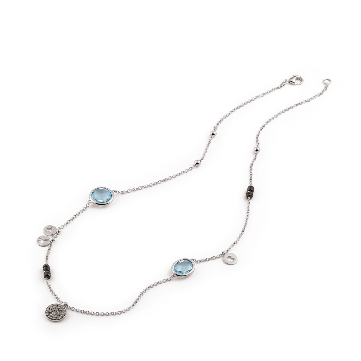 Al Coro 18 karaat witgouden collier met blauwe topaas, diamant en zwarte saffier C338TW