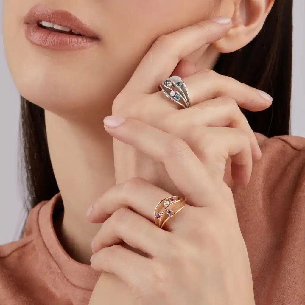 Bijzonder zijn de beroemde acht kleuren goud van Cammilli. Dit is een hulpmiddel om de creatieve mogelijkheden uit te breiden door met verschillende tinten te spelen, en tegelijkertijd elke vrouw de nuance te laten kiezen die het beste bij haar persoonlijkheid en huidskleur past.