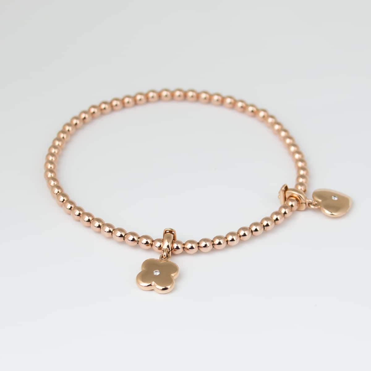 Deze Artur Scholl armband van 18 karaat roségoud combineert verfijning met speels gemak. De glanzende bolletjes van drie millimeter zorgen voor een subtiel, tijdloos effect. Dankzij de rekbare constructie glijdt de armband moeiteloos om de pols. Draag haar solo voor een minimalistische look of personaliseer haar met een van de afgebeelde bedels voor een uniek accent.