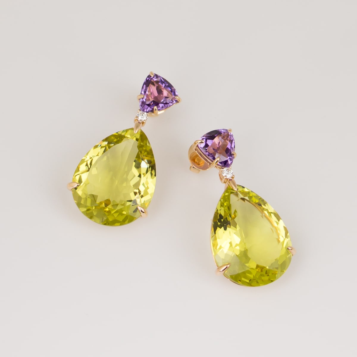 Artur Scholl Oorhangers roségoud met amethist, olive quartz en diamant 93/14230R/AQ