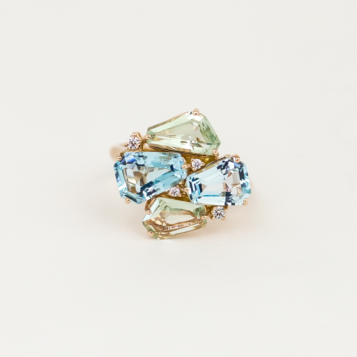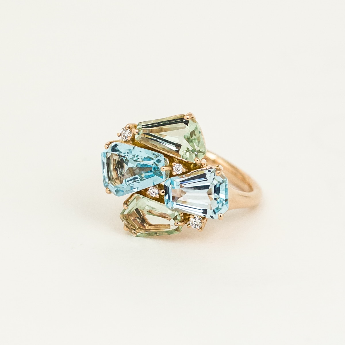 Artur Scholl Ring Roségoud met blauw topaas, groene amethist en diamant 93/13842R/BT