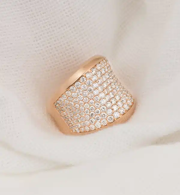 Deze 18 karaat roségouden ring uit de collectie van Artur Scholl is een echte eye-catcher. In de ring is 3,30 ct. aan schitterende diamanten gezet (kwaliteit VVS/W). Doordat de diamanten in roségoud zijn gezet is dit samen een hele warme combinatie. De binnenzijde van de ring is helemaal glad afgewerkt waardoor dit heel zacht aanvoelt op de huid.