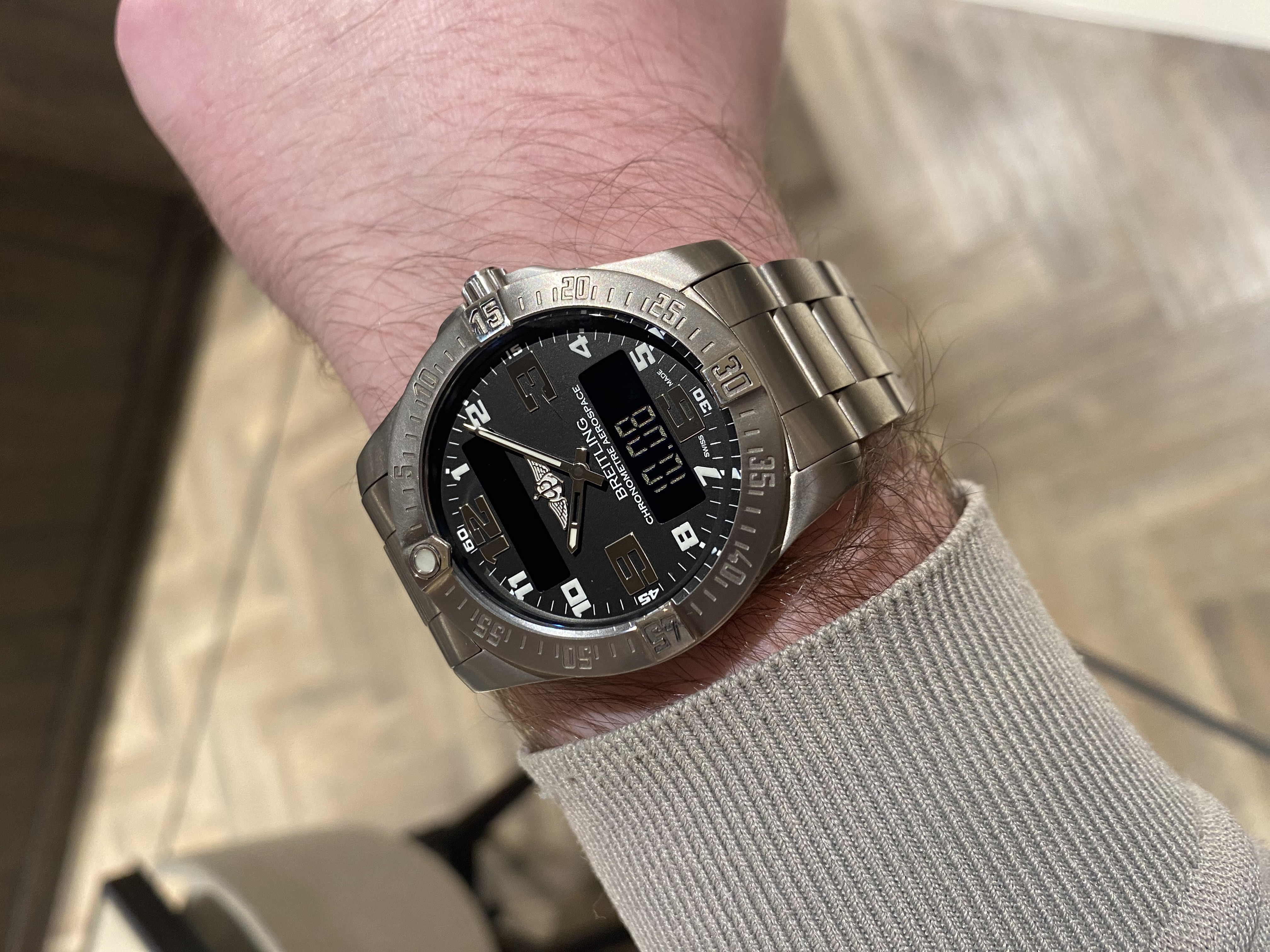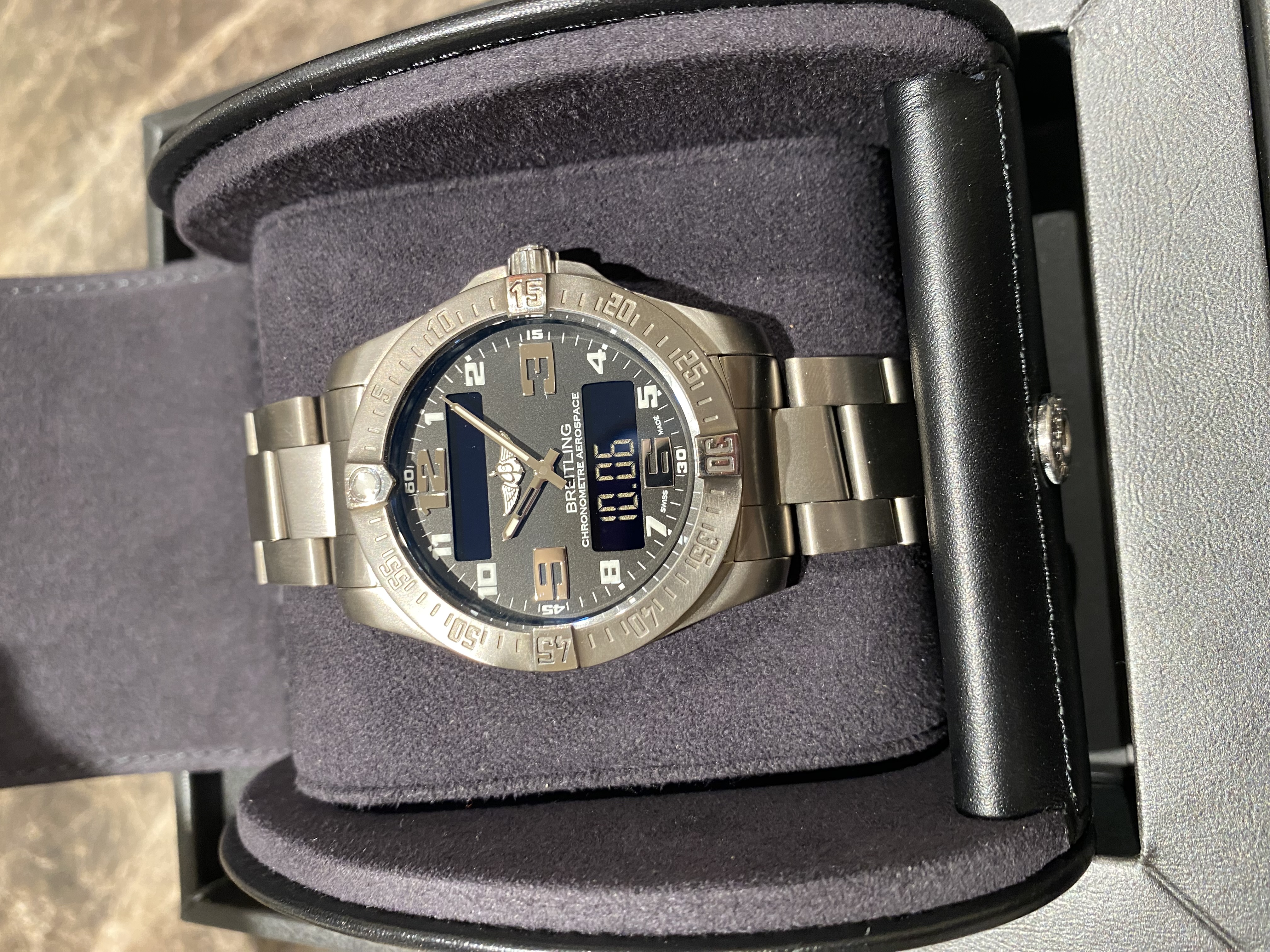 De aller vroegste horloges die digitaal analoog waren kwamen nog uit onder leiding van Willy Breitling, maar later in 1985, is de techniek verder ontwikkeld en werd de eerste Aerospace wereldkundig gemaakt. Het horloge was opvallend groot voor die tijd en was uitgevoerd in titanium met goud accenten. Dit horloge is zo specifiek Breitling dat het een cult-status heeft gekregen in de wereld van de horlogerie.