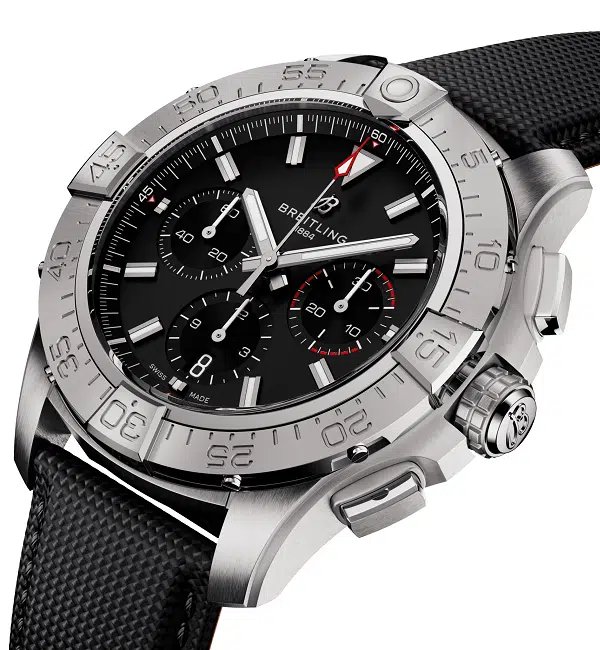 De kracht achter de nieuwe Avenger B01 Chronograph 44 is het Breitling Manufactuurkaliber 01. Door de nieuwe rechthoekige indexen, wordt de chronograaf wijzer met rode punt benadrukt. Het grippatroon op de kroon en lunette, en op de nieuwe vierkante drukknoppen zijn bedoeld voor uitermate soepele tijdwaarnemingshandelingen. Een model met betrouwbaarheid en efficiëntie.