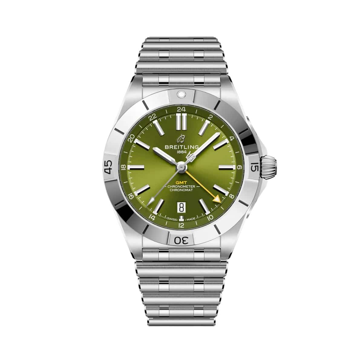 Breitling’s veelzijdige Chronomat verschijnt in een gelimiteerde editie in samenwerking met Giannis Antetokounmpo. Gelimiteerd tot slechts 2.000 stuks, combineert de Giannis Antetokounmpo Chronomat-collectie onze tijdloze vakmanschap met de ontspannen stijl van de professionele basketballer. De horloges zijn uitgevoerd in groentinten die persoonlijk door Giannis zijn gekozen, terwijl klassieke Chronomat-elementen behouden blijven, zoals de “Rouleaux”-band—uitgevoerd in metaal of rubber—en de verhoogde rijdersmarkeringen op de kwartierpunten. Let op het contragewicht van de centrale wijzer, dat de initialen “GA” van de atleet draagt, en de basketbalvorm op de kleine secondewijzer van de chronograaf—een knipoog naar zijn beroep en passie.