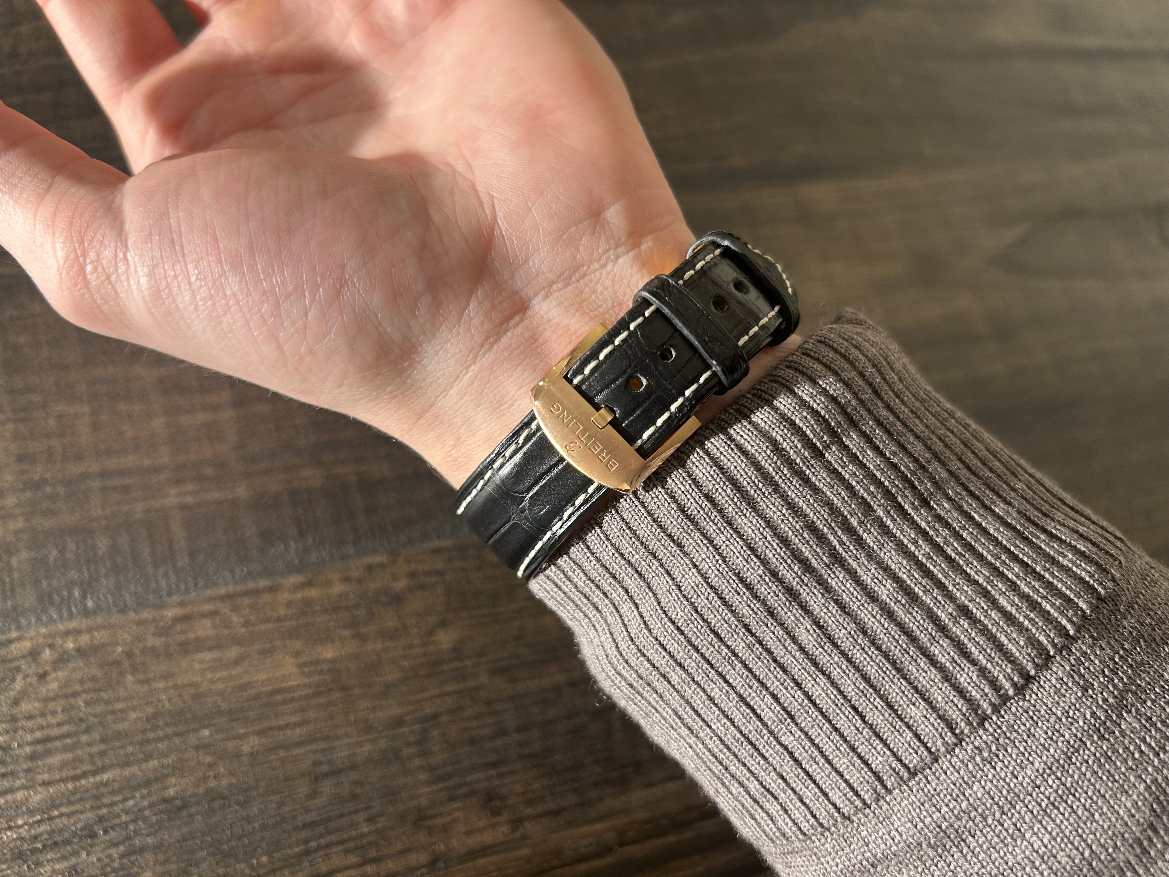 De Navitimer is het absolute icoon van Breitling. Het model stamt uit de jaren 1950, en is sindsdien steeds aan de huidige tijdsgeest aangepast. Zowel qua design als qua uurwerk. Dit prachtige horloge is een recente toevoeging aan de Navitimer collectie. De GMT functie geeft de tweede tijdzone weer .Wat het horloge qua functionaliteit zeer passend maakt voor zowel de hedendaagse avonturier, als voor de historische luchtvaart connectie. Een fraai detail is dat de GMT ring verlaagd op de wijzerplaat ligt. Hierdoor ontstaat er diepte in de wijzerplaat waardoor het licht zich subtiel verspreid.