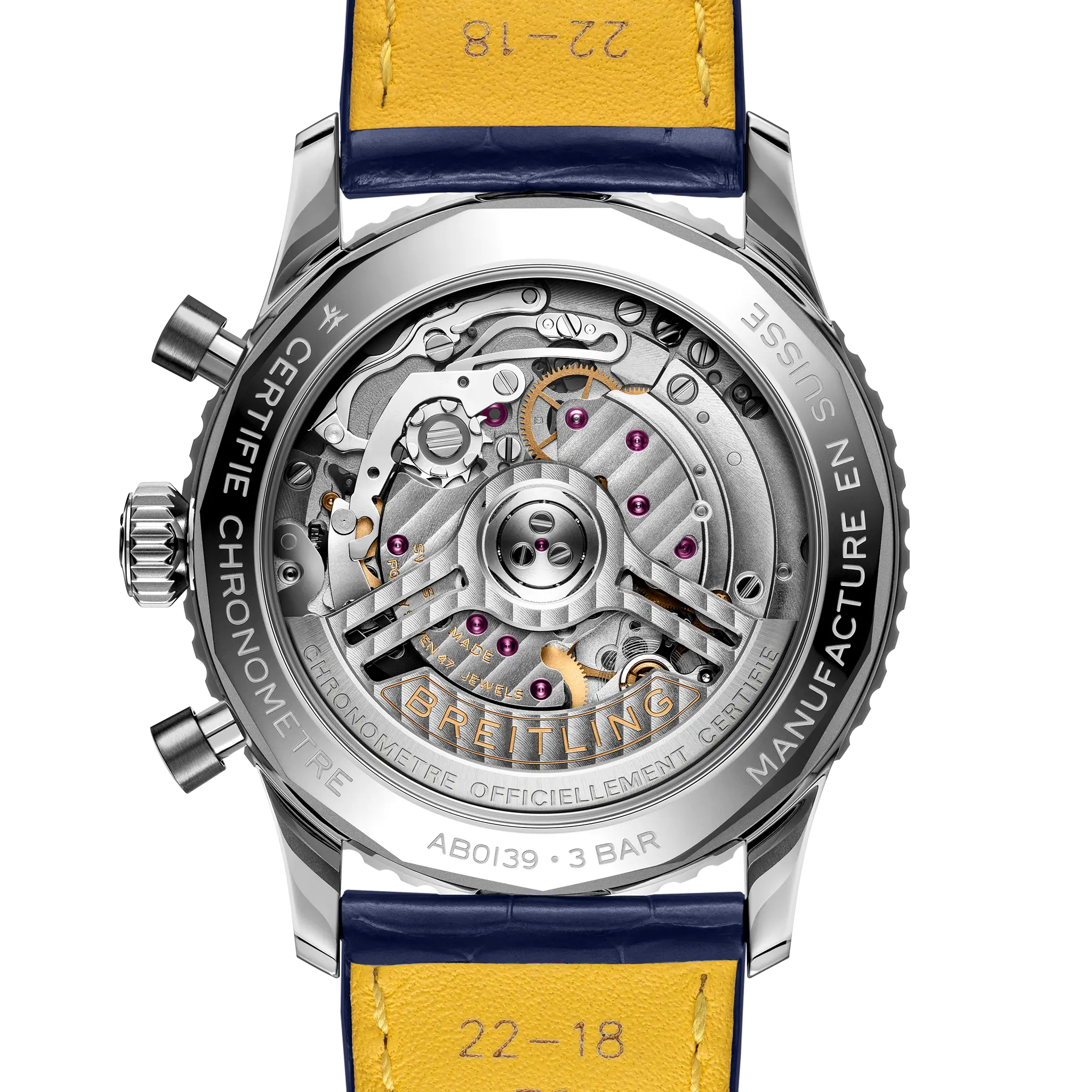 In 1952 ontwikkelde Willy Breitling een om de pols gedragen chronograaf met een cirkelvormige rekenliniaal waarmee piloten alle benodigde vluchtberekeningen konden uitvoeren. Twee jaar later kondigde de Aircraft Owners and Pilots Association (AOPA) het ontwerp aan als officieel uurwerk. De “navigatietimer” – of Navitimer – was geboren. De AOPA was (en blijft) de grootste pilotenclub ter wereld, met bijna alle Amerikaanse vliegeniers in de gelederen. Als het echte pilotenhorloge tijdens de gloriedagen van de burgerluchtvaart, werd de Navitimer gedragen door kapiteins van luchtvaartmaatschappijen en vliegtuigenthousiastelingen. Het vond zelfs zijn weg naar de ruimte om de pols van astronaut Scott Carpenter in 1962. En het waren niet alleen piloten die aangetrokken werden door de onstuitbare esthetiek van het horloge. Beroemdheden uit die tijd zoals Miles Davis en Serge Gainsbourg waren toegewijden, wat aantoont dat de Navitimer zowel stijl als functie had. Er zijn veel herhalingen van Breitling’s icoon geweest sinds zijn debuut 70 jaar geleden, maar deze nieuwe Navitimer legt de meest klassieke functies vast en verbetert ze met moderne verfijningen.
