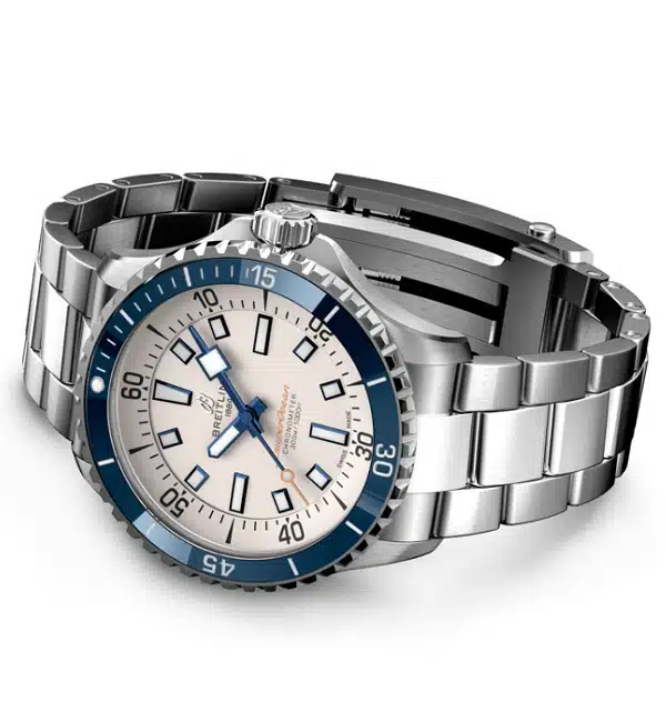 Prestaties en stijl voor al uw bezigheden op het water. In de jaren zestig was de sport duiken een ware rage. Voor duikers was timing alles. Breitling wilde ze een zo duidelijk mogelijk duikhorloge geven door alle functies te elimineren die niet voldeden aan hun levensreddende behoeften onder water. Dit uitgeklede horloge kreeg de naam Slow Motion. Wat overbleef waren strakke lijnen, stevige lichtgevende indexen, vierkante wijzers en een contrastrijke wijzerplaatring, allemaal gericht op maximale leesbaarheid. Praktisch, ja. Maar waar mensen echt verliefd op werden, was de look. De nieuwe Superocean volgt de gevierde ontwerpcodes van Slow Motion en voegt moderne functies toe, zoals een met keramiek ingelegde ring en felgekleurde wijzerplaten. Brede wijzers en indexen in lichtgevend Super-LumiNova® zorgen voor een goede leesbaarheid onder water. Het beste van alles is dat dit niet langer strikt een duikhorloge is: surf ermee, zwem ermee, ga ermee naar de strandbar en draag het dan tijdens het avondeten. De Superocean brengt de nostalgie van zijn erfgoed perfect in evenwicht met een frisse nieuwe look.