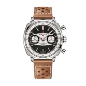 Met zijn gedurfde grafische wijzerplaat en retro cushion-case design brengt de Top Time Racing de geest van rally races tot leven. De tachymeter schaal zorgt voor nauwkeurige snelheidsmetingen, en de geperforeerde kalfslederen band verwijst naar de vintage racehandschoenen. Het Martini Racing model valt meteen op door zijn levendige blauwe en rode strepen op de wijzerplaat, gecombineerd met een klassieke cushion-vormige kast en de herkenbare “squircle” subdials. Dit horloge is een eerbetoon aan zowel de autosport als de geschiedenis van Breitling, met een krachtig retro design en geavanceerde technologie, zoals de COSC-gecertificeerde chronometer met 70 uur gangreserve.