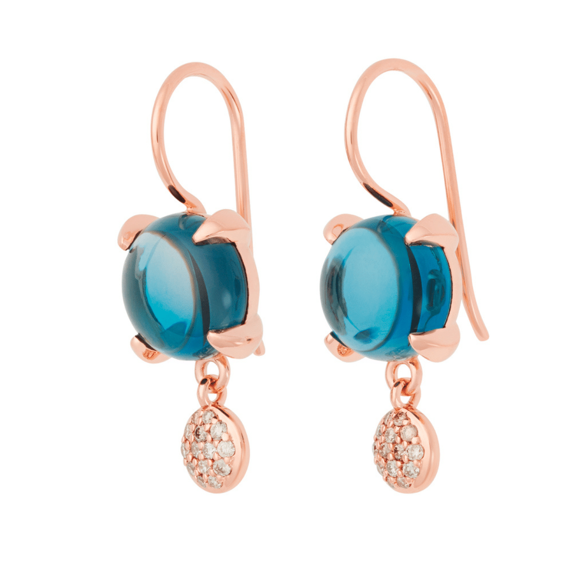 Bron Catch roségouden oorhangers met blauwe topaas en champagne diamant 8OR4892TLCCBR