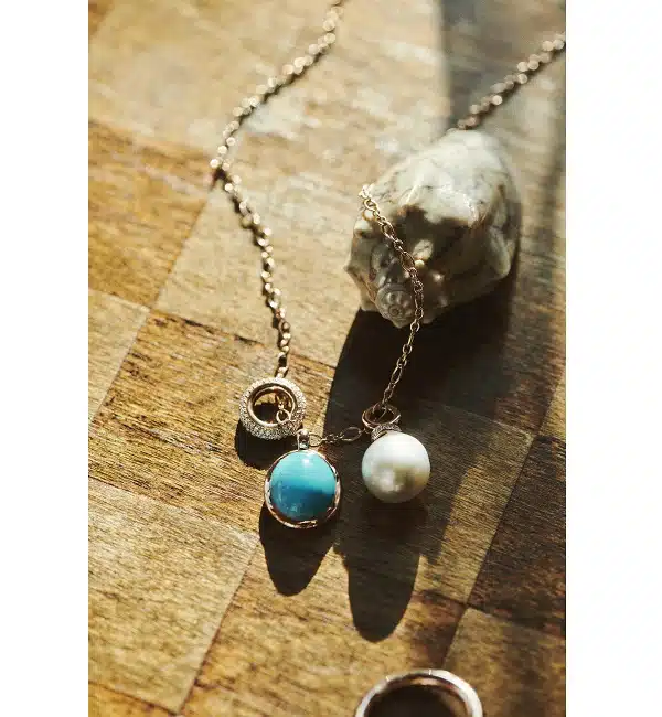 De kleuren van de zee zijn de inspiratie voor de “Fruits de Mer” collectie. Blikvangers turkoois en amazoniet vormen een prachtig contrast met roze snoepsaffier en het delicate lila van amethist. De hoofdrol in deze collectie is echter voorbehouden aan de Zuidzee parels, de ultieme vruchten van de zee, speciaal voor deze collectie geaccentueerd met glinsterende diamant.