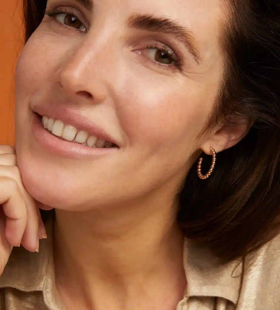 Elegante 18 karaat roségouden oorringen met bolletjes. De oorringen hebben een doorsnede van 25 millimeter.