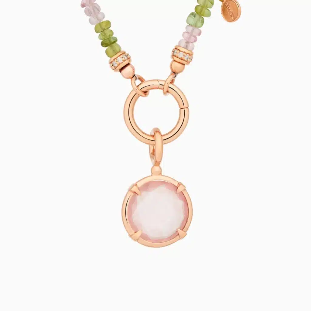 Bron Mira Mira roségouden hanger met Briolet geslepen roze kwarts 8HR3418RQB