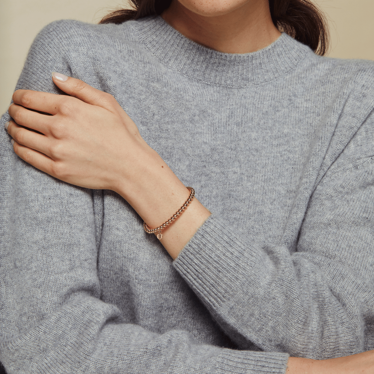 De Bron Reflex armband straalt pure elegantie uit met haar subtiele, vloeiende lijnen en warme gloed van 18 karaat roségoud. Het verfijnde ontwerp omarmt de pols als een tweede huid — soepel, stijlvol en moeiteloos draagbaar. Deze armband is een toonbeeld van tijdloze schoonheid: krachtig in eenvoud, maar met de herkenbare vrouwelijke touch waar Bron om bekendstaat. Perfect om solo te dragen of te combineren met andere favorieten uit de Bron-collectie.