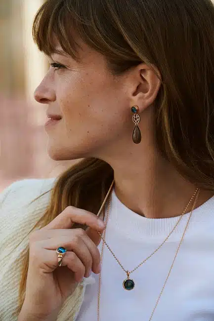 Bron Toujours Ajour roségouden oorhangers met London blue topaas en rookkwarts 8OR4819TLCSQD