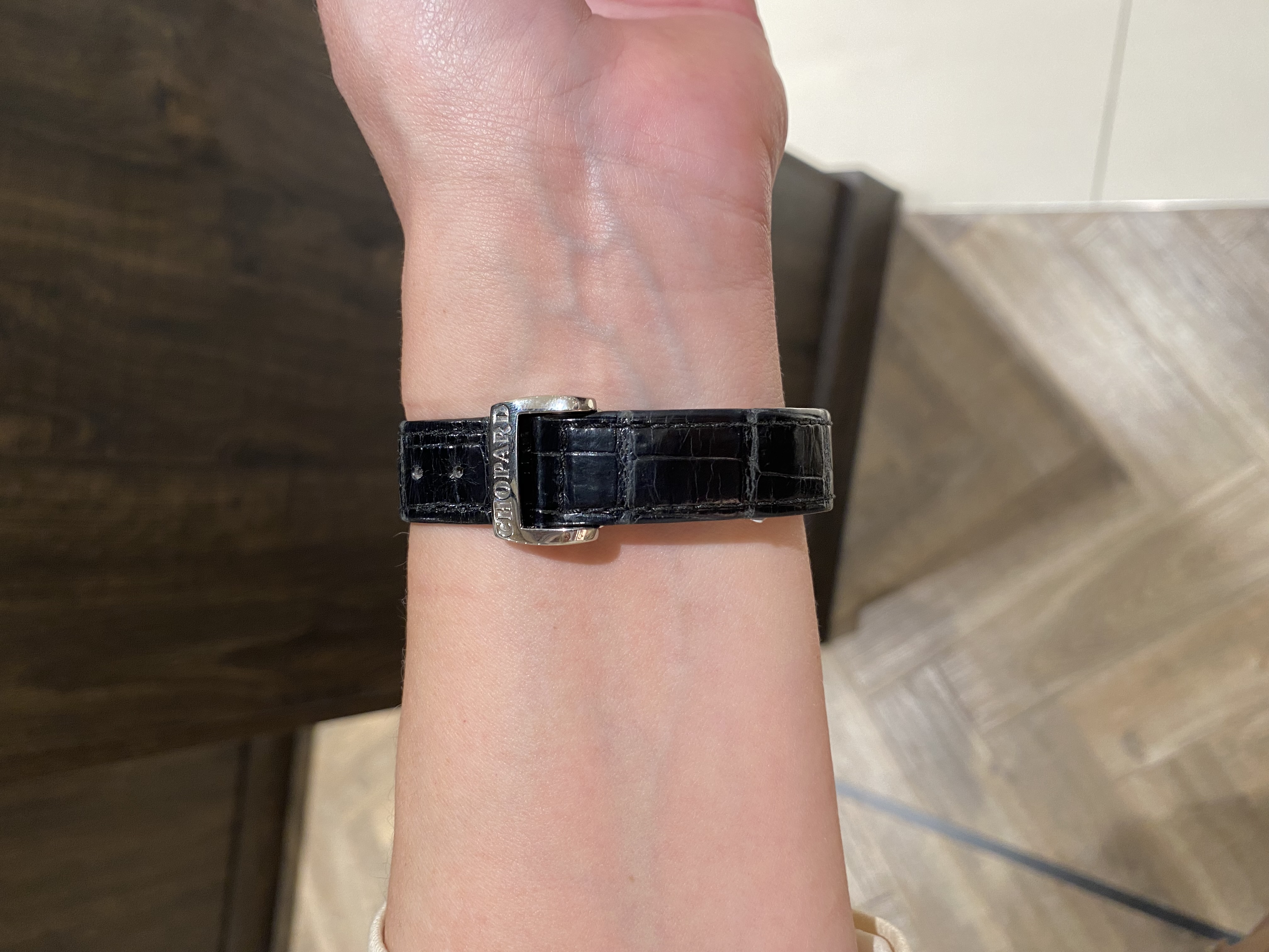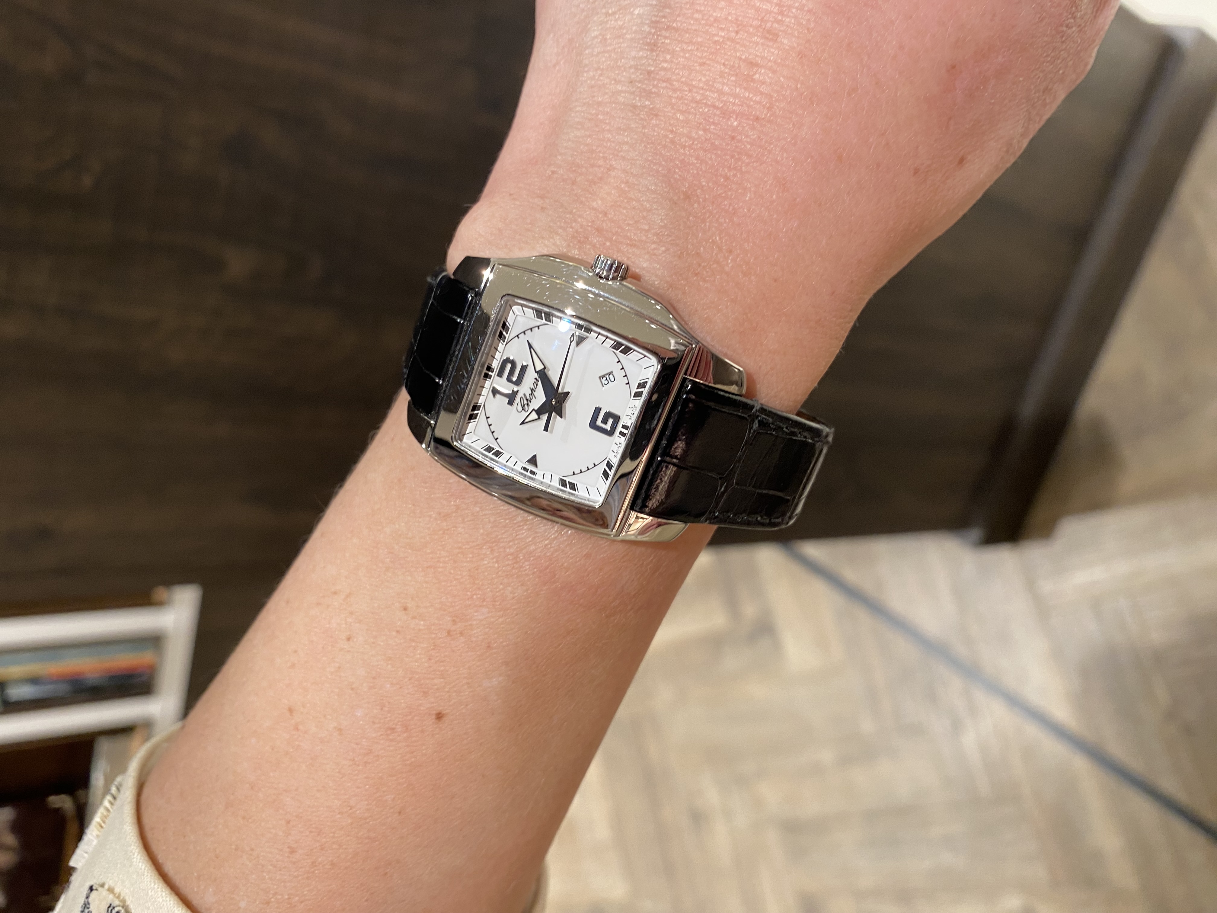 Dit prachtig ingetogen horloge stamt uit een andere collectie, wat de bescheidenheid des te meer benadrukt. Het horloge komt uit de Two O Ten collectie. Deze collectie staat bekend om haar speelse kastvormen die tijdloze elegantie samenbrengen met een sportieve twist. Een prachtig voorbeeld van hoe Chopard meester is in vormgeving.
