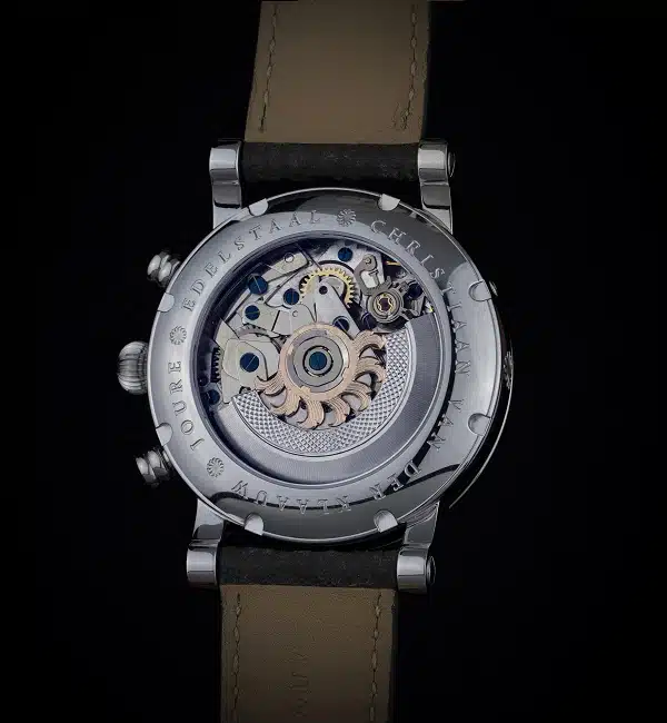 De Christiaan van der Klaauw Ariadne bestaat al vele jaren en maakt gebruik van een klassieke combinatie van een automatische chronograaf, een complete kalender met een elegante pointer datum, een dag-nacht aanduiding en een maanfase aanduiding. De drie nieuwe Ariadne modellen zijn de eerste horloges die onder de leiding van Pim Koeslag de ateliers van Christiaan van der Klaauw verlaten. De meester-horlogemaker werd vorig jaar de nieuwe technisch directeur en mede-eigenaar van het horlogemerk. De kwaliteit van het uurwerk is onveranderd hoog. De frisse, moderne uitstraling heeft het horloge te danken aan het nieuwe wijzerplaatontwerp en hoe deze speelt met structuren en contrasten.