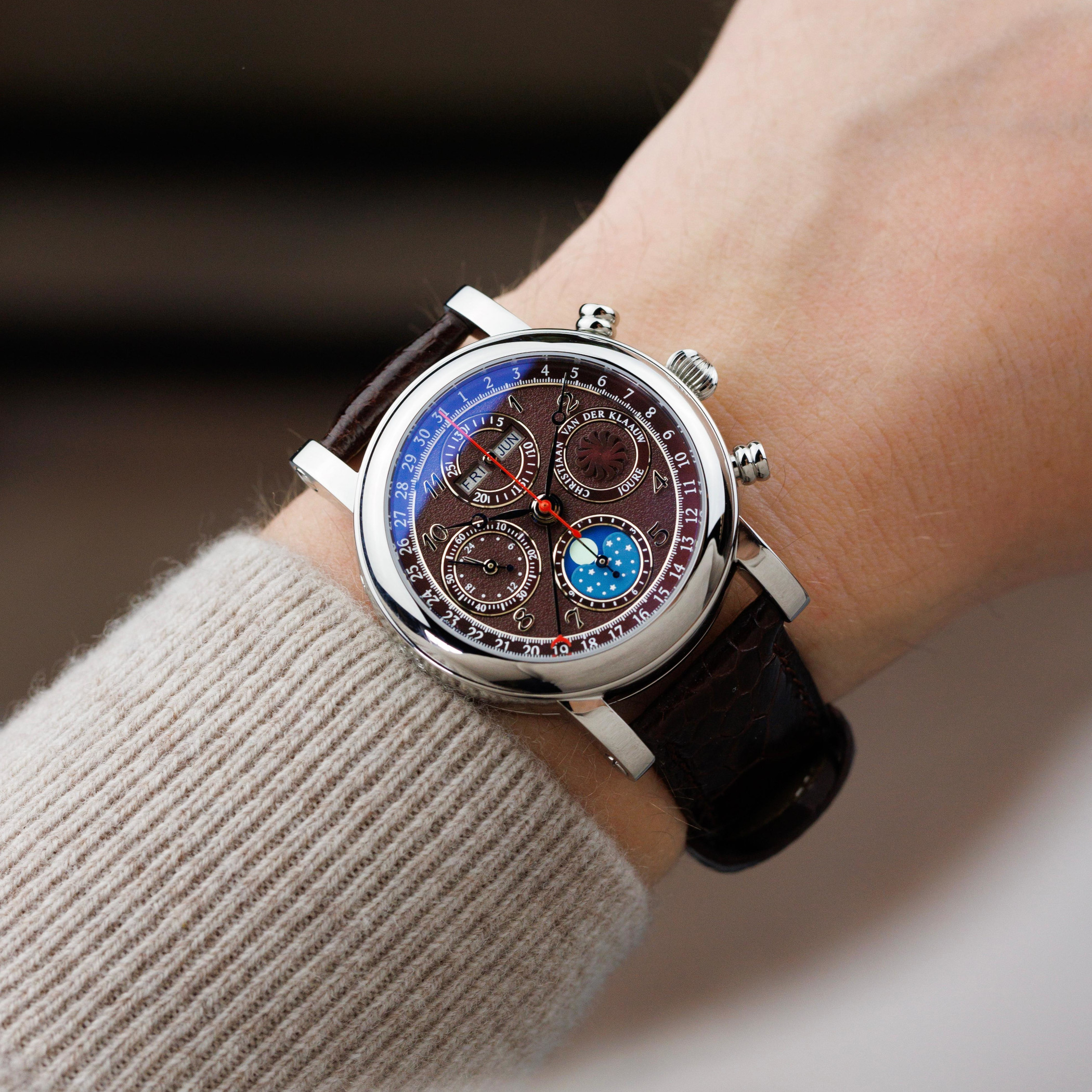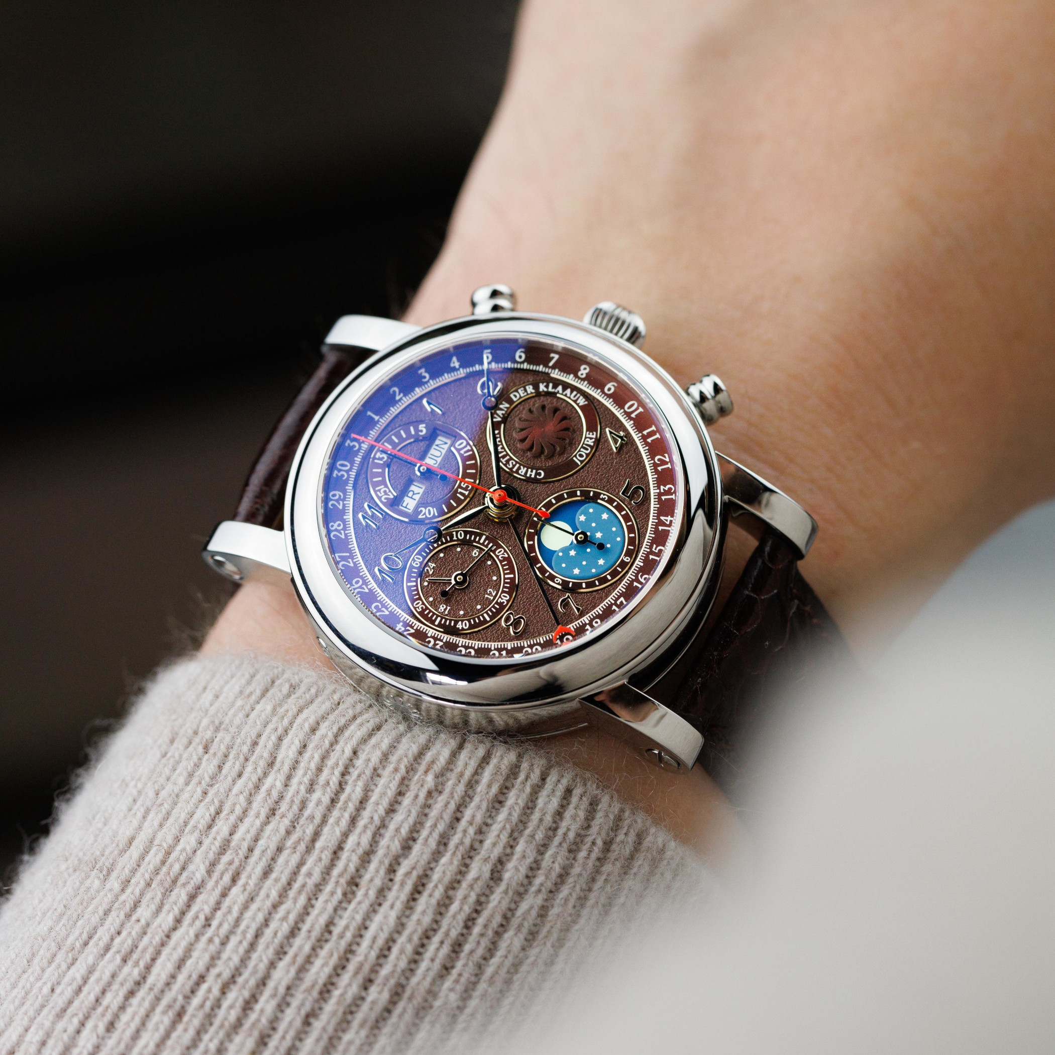 De Christiaan van der Klaauw Ariadne bestaat al vele jaren en maakt gebruik van een klassieke combinatie van een automatische chronograaf, een complete kalender met een elegante pointer datum, een dag-nacht aanduiding en een maanfase aanduiding. De drie nieuwe Ariadne modellen zijn de eerste horloges die onder de leiding van Pim Koeslag de ateliers van Christiaan van der Klaauw verlaten. De meester-horlogemaker werd vorig jaar de nieuwe technisch directeur en mede-eigenaar van het horlogemerk. De kwaliteit van het uurwerk is onveranderd hoog. De frisse, moderne uitstraling heeft het horloge te danken aan het nieuwe wijzerplaatontwerp en hoe deze speelt met structuren en contrasten.