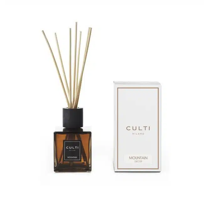 Stijlvolle, vierkante flessen van dik glas met een donkerbruine esdoornhouten dop. De gedurfde, onderscheidende kenmerken van de Culti Decor-lijn voegen een vleugje karakter toe aan elke kamer. De lichte geur ‘Mountain’ heeft een geruststellende en beslissende geur die warmte uitstraalt. Voor deze diffuser is een refill te bestellen die bij benadering na 3 maanden van pas zal komen.