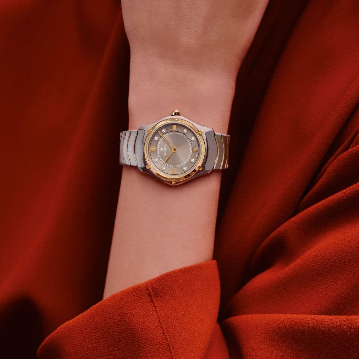 Kenmerkend voor de Sport Classic is de iconische wave-schakelband, die niet alleen zorgt voor een unieke uitstraling, maar ook voor een hoog draagcomfort. De kast met zijn kenmerkende schroefdetails en zeshoekige vorm benadrukt het design-DNA van Ebel, dat al sinds de jaren ’70 wereldwijd wordt gewaardeerd.