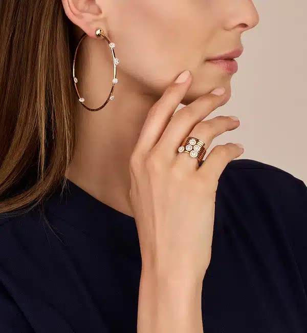 Deze prachtige ring van GioMio uit de 'Celestial' collectie, is vervaardigd van 18 karaat roségoud. In vijf ronde elementjes, zijn briljant geslepen diamanten gezet. Ontworpen en vervaardigd met een onberispelijk oog voor detail.