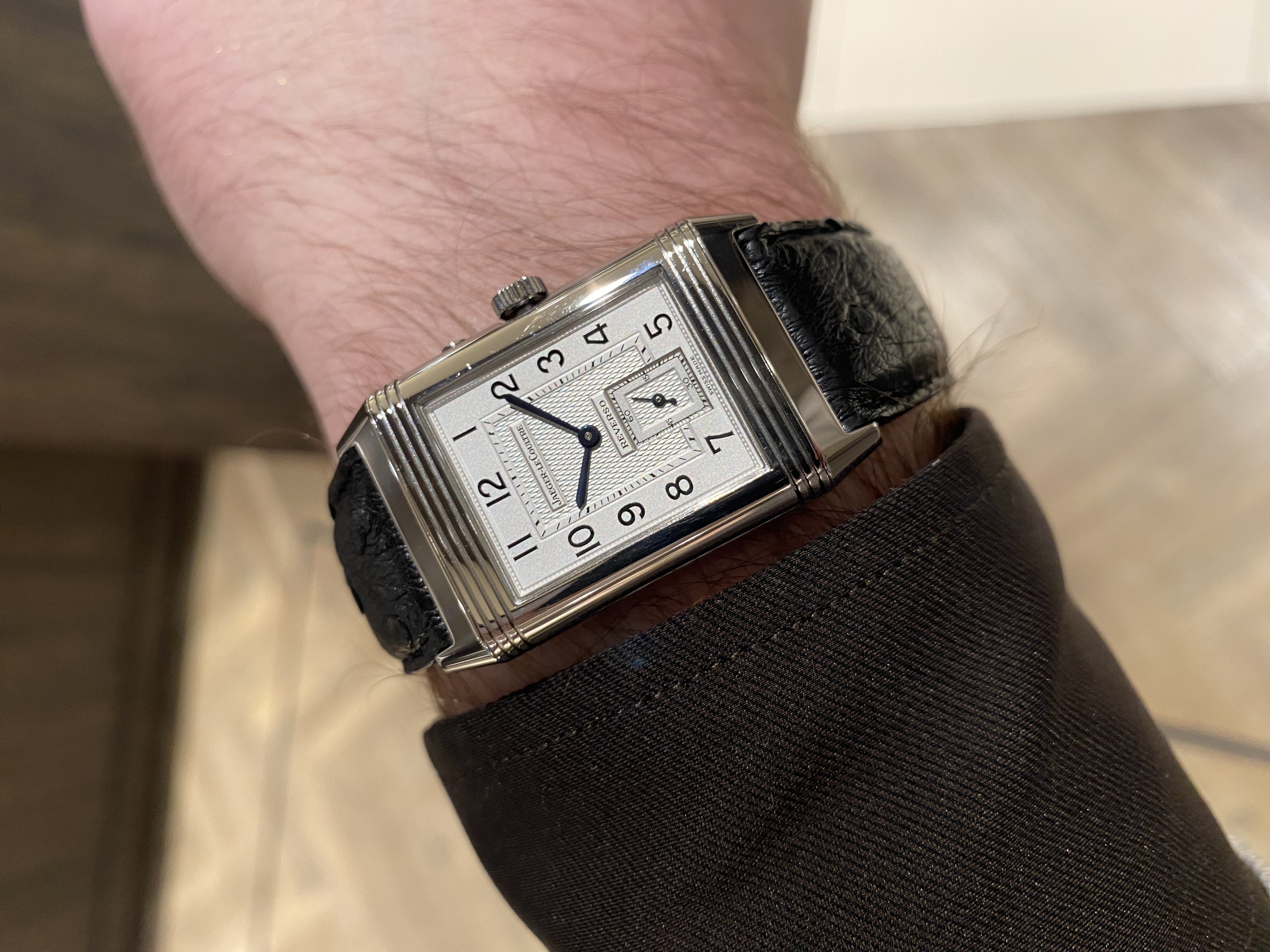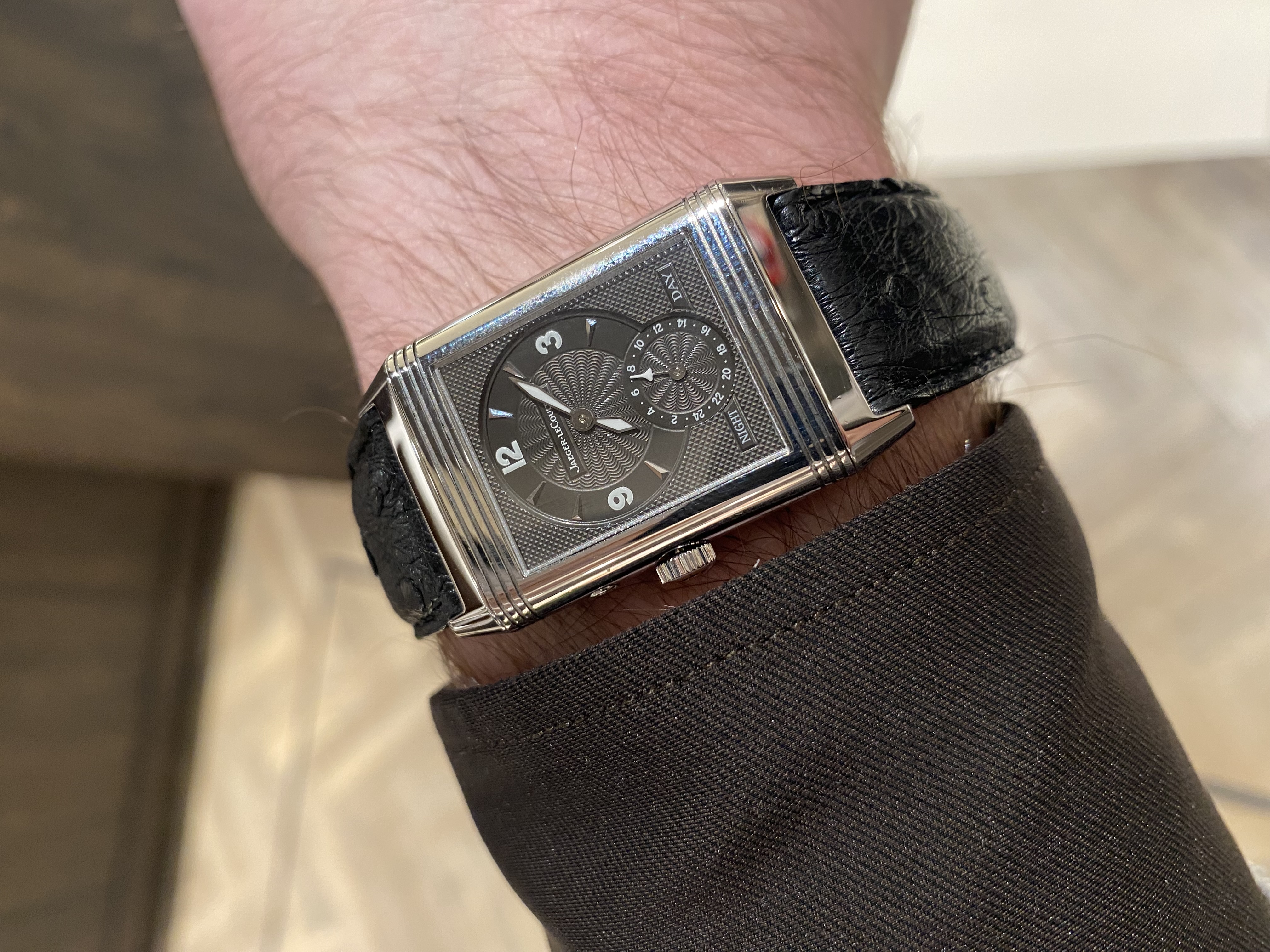Dit specifieke model is de Dual Time. U heeft aan de ene kant de wijzerplaat van de klassieke Reverso. Als u het horloge omdraait heeft u een tweede horloge. De tweede wijzerplaat van de tweede tijdzone.