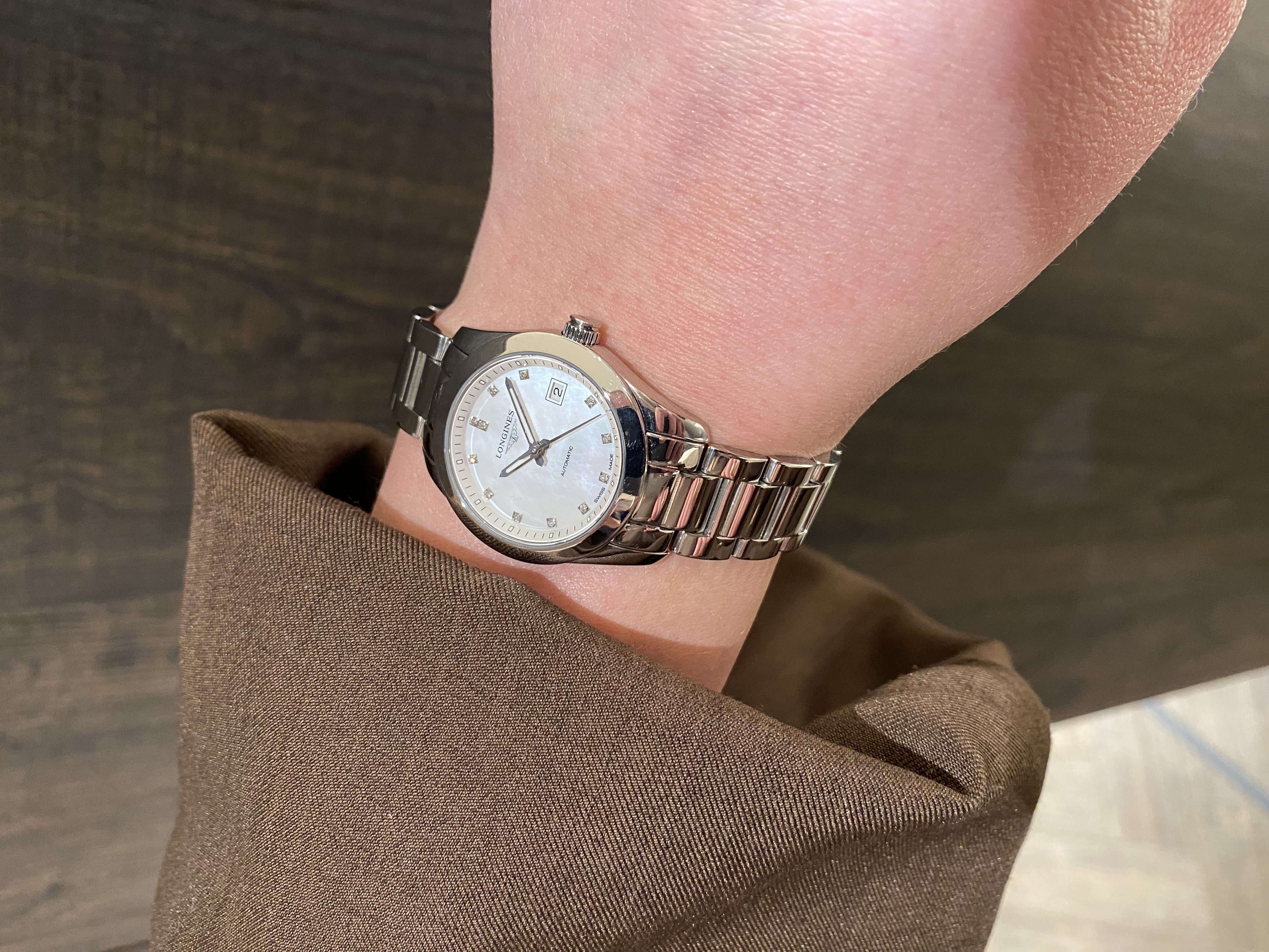 Dit specifieke horloge is een moderne versie van de Conquest. Met een bescheiden maatvoering van 29mm is het een discreet juweel. De briljant gezette, parelmoer wijzerplaat geven het horloge een sensuele touch, zonder te opvallend te zijn. Het horloge is weer helemaal ready om met liefde gedragen te worden.