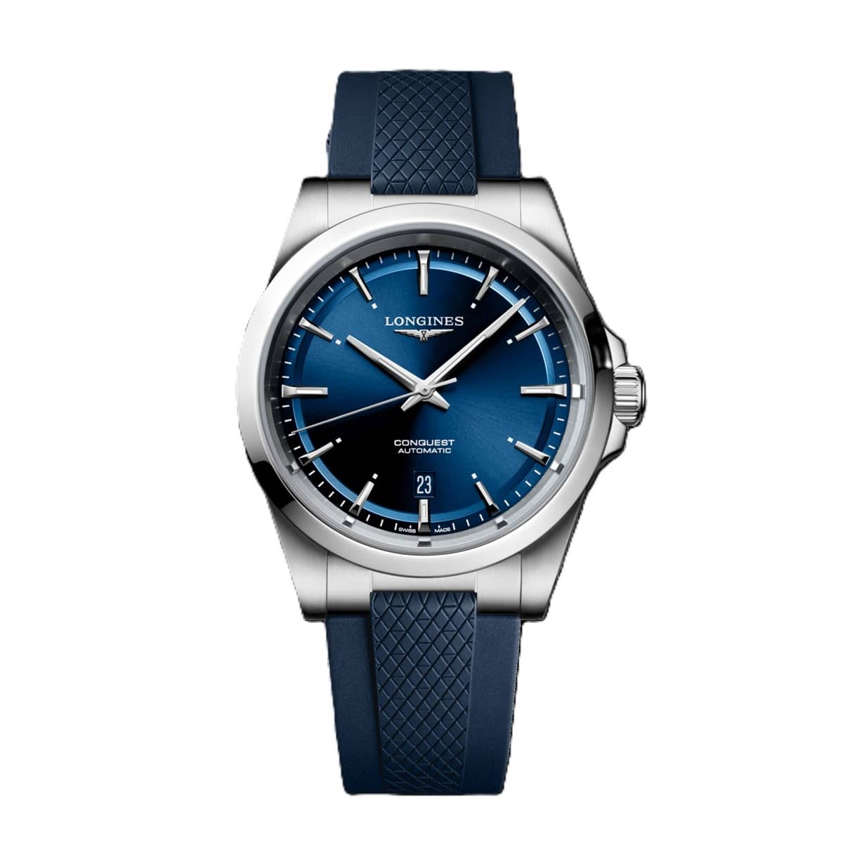 De Longines Conquest is hét ultieme alledaagse horloge, waar Zwitserse precisie en sportieve verfijning samenkomen. Voorzien van een automatisch uurwerk met een gangreserve van 72 uur en een geschroefde kroon voor waterdichtheid tot 10 bar, is de Conquest gebouwd om mee te presteren. De zonnestraalblauwe wijzerplaat met Super-LumiNova®, het krasbestendige saffierglas met dubbele antireflectiecoating, en de comfortabele rubberen band met vouwsluiting en micro-aanpassing maken dit horloge tot een perfecte metgezel voor elk moment.