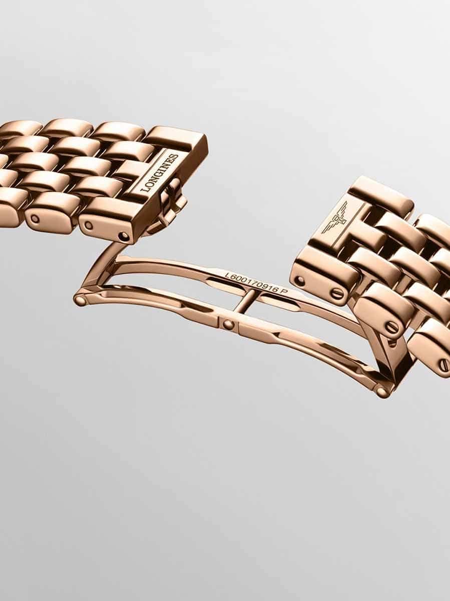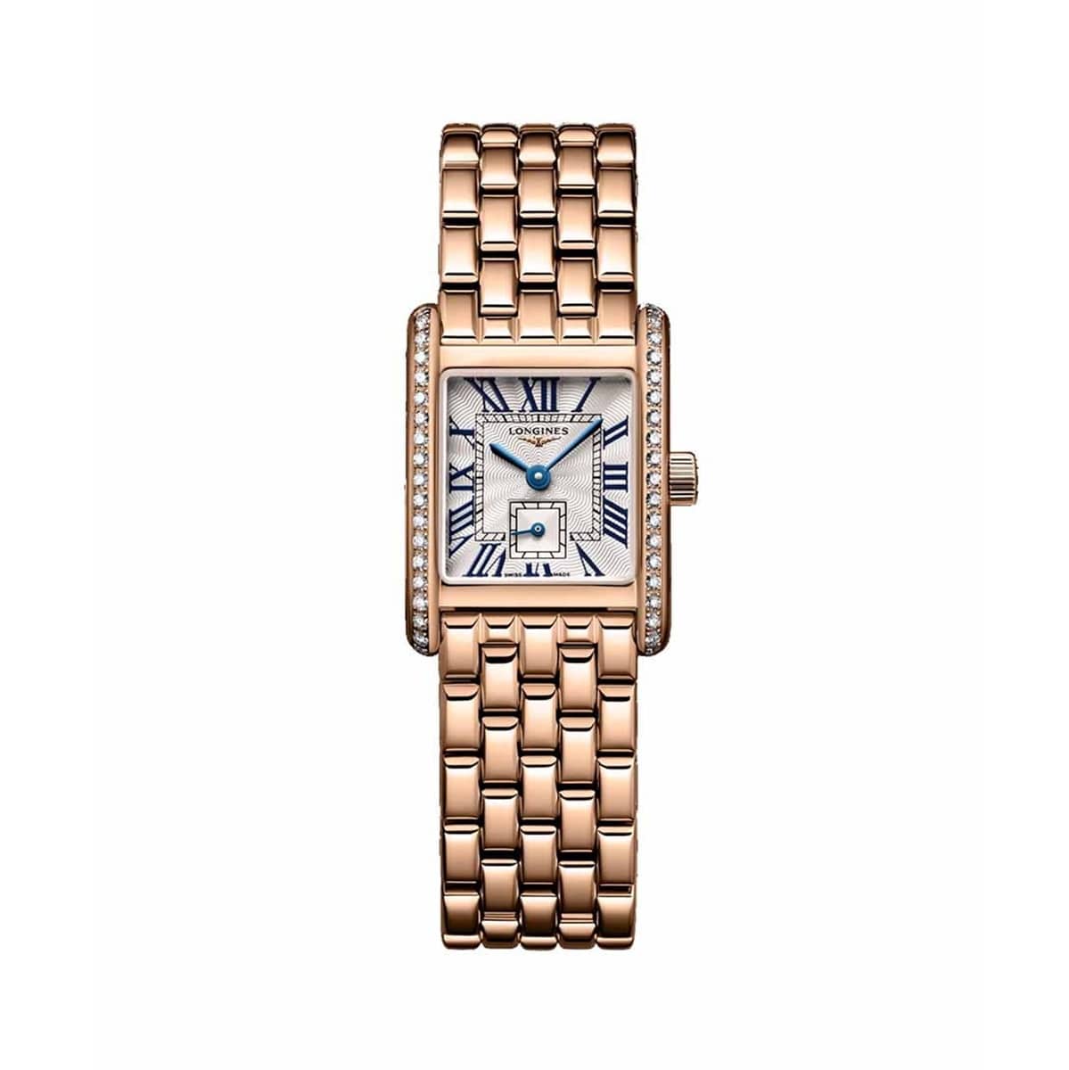 Een tijdloze ode aan elegantie: het Mini DolceVita dameshorloge in volledig 18 karaat roségoud combineert verfijnde lijnen met sprankelende briljant geslepen diamanten in de kast. Het subtiele profiel van 21,5 x 29 mm omarmt de pols met luxe en comfort, terwijl de klassieke styling en moderne details Longines’ kenmerkende ‘quiet luxury’ perfect tot uiting brengen. Een horloge dat zowel bij dagelijkse elegantie als bijzondere gelegenheden schittert, en een echte blikvanger voor de stijlvolle vrouw.