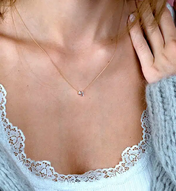 Dit 14 karaat witgouden collier van Miss Spring, komt uit de C’est Moi collectie. Het geheel bestaat uit een fijn collier en een letterhangertje met de letter A (De ‘V’ is afgebeeld). Het letterhangertje kan heen en weer schuiven over het collier. Het collier heeft een totale lengte van 42 centimeter. Door het versteloogje op 39 centimeter is ze ook korter te dragen. Zo kun je op een speelse manier meerdere colliers onder elkaar dragen.