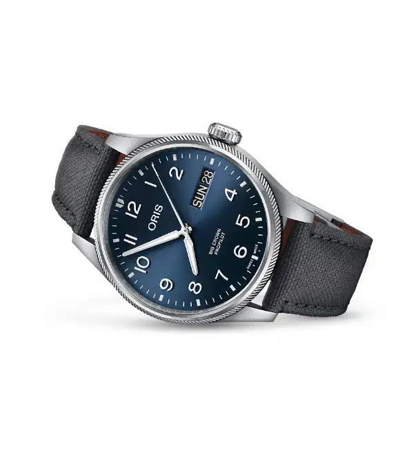 De Oris Big Crown ProPilot serie is het resultaat van uitgebreid onderzoek samen met professionele piloten en de designers van Oris, waarbij het Oris Big Crown DNA werd gerespecteerd en omgezet in een nieuwe generatie horloges. Dit horloge is niet alleen je perfecte metgezel in de cockpit, maar ook een fantastisch uurwerk, waar je uitdagingen je ook brengen. Het horloge heeft een geborstelde edelstalen kast, een blauwe wijzerplaat met arabische cijfers en een dag en datumaanduiding op 3u. De stevige grijze canvas band heeft een prettige vouwsluiting. Het saffierglas is behandeld met een anti-reflectie coating. Automatisch aangedreven uurwerk (kaliber 752). Waterresistent tot 10 bar (100 meter).