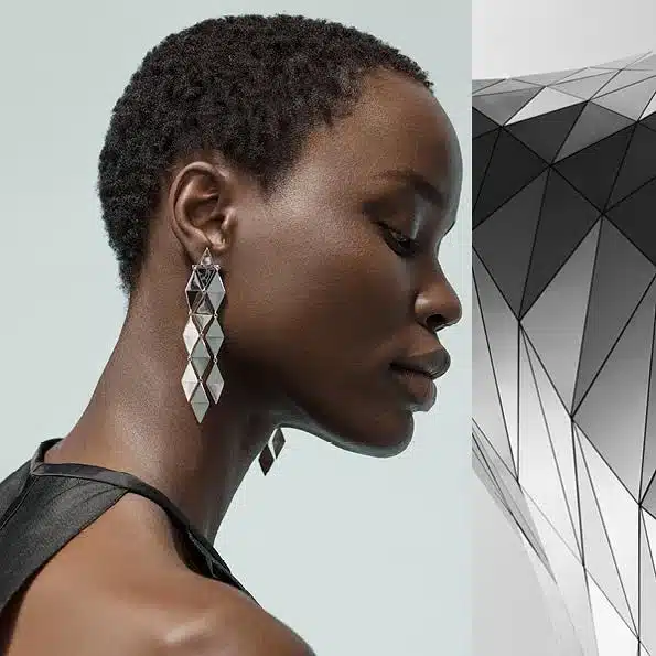 Een eigenzinnig oorsieraad van Pianegonda. Zwevende diamantvormen met schuine vlakken reflecteren de lichtstralen, waardoor een prachtige fonkeling ontstaat. Zilveren sculpturen met vormen die modulair worden herhaald, geven leven aan perfect harmonische symmetrieën. Indrukwekkende oorhangers voor vrouwen die een stijlstatement durven te maken.