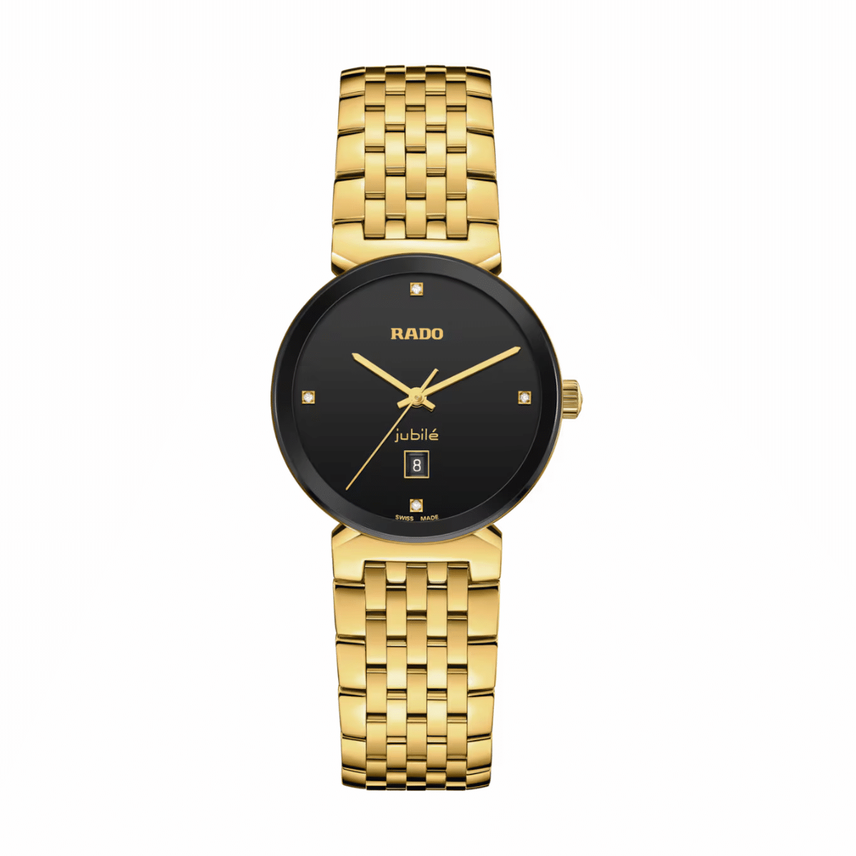 De harmonieuze vormgeving van de Rado Florence Classic doet denken aan de elegante koepels en torens van de stad waarnaar de collectie is vernoemd. Met hoogwaardige quartz-uurwerken en innovatief Rado edge-to-edge gemetalliseerd saffierglas zijn dit Swiss Made horloges die ontworpen zijn om de tand des tijds te doorstaan. Rhodium-geplateerde wijzers glijden over vier briljant geslepen diamanten, gezet als indexen op 3, 6, 9 en 12 uur. Hun fonkelende aanwezigheid wordt benadrukt en gevierd in de nieuwe Florence Classic-collectie door de terugkeer van het beroemde Jubilé-logo.