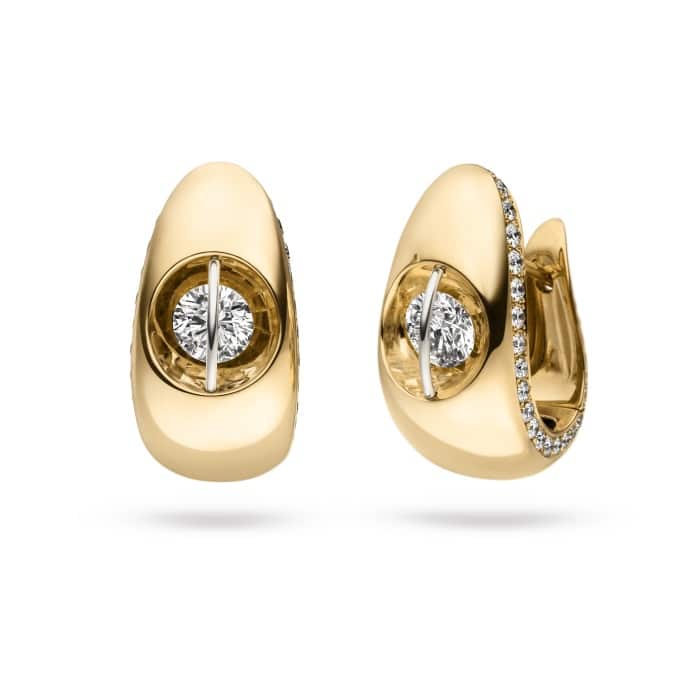 Een fonkelende diamant zweeft vrij in de unieke Liberté zetting. Door de bewegingsvrijheid ontstaat een levendig lichtspel dat voortdurend verandert. Met elke beweging vangt de diamant opnieuw het licht en danst met een ongekende glans. Een uitzonderlijk oorsieraad dat pure magie zichtbaar maakt.