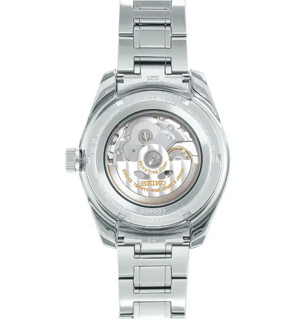 Deze Presage van Seiko komt uit de Sharp Edged serie. De witte wijzerplaat  afgewerkt met het Japanse hennepblad patroon. De rijke textuur van het strakke geometrische patroon creëert subtiele kleurgradaties in het spel tussen licht en vorm. Dit model heeft naast de analoge tijdsweergaven en datumaanduiding, ook een GMT-functie en een gangreserve indicator.