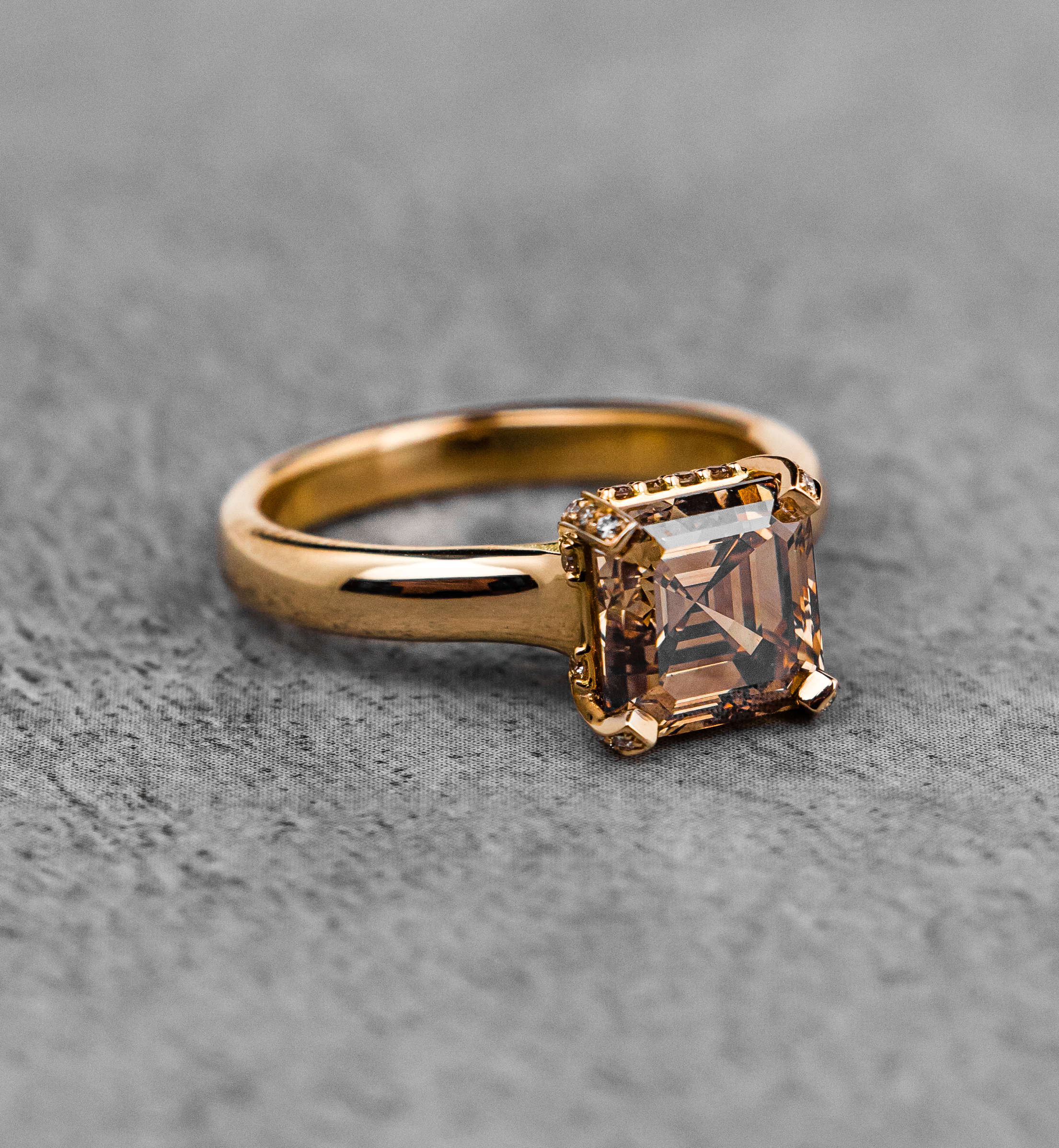 Onze collectie zal u verrassen en versteld doen staan door de verschillende slijpvormen, kleuren en combinaties van diamant. De ontwerpen geven de diamant met haar mysterieuze karakter een eigen identiteit. Laat u meevoeren door onze verhalen bij het zien van onze, niet alledaagse collectie en wellicht vindt u de ring die uw eigen identiteit weerspiegelt.