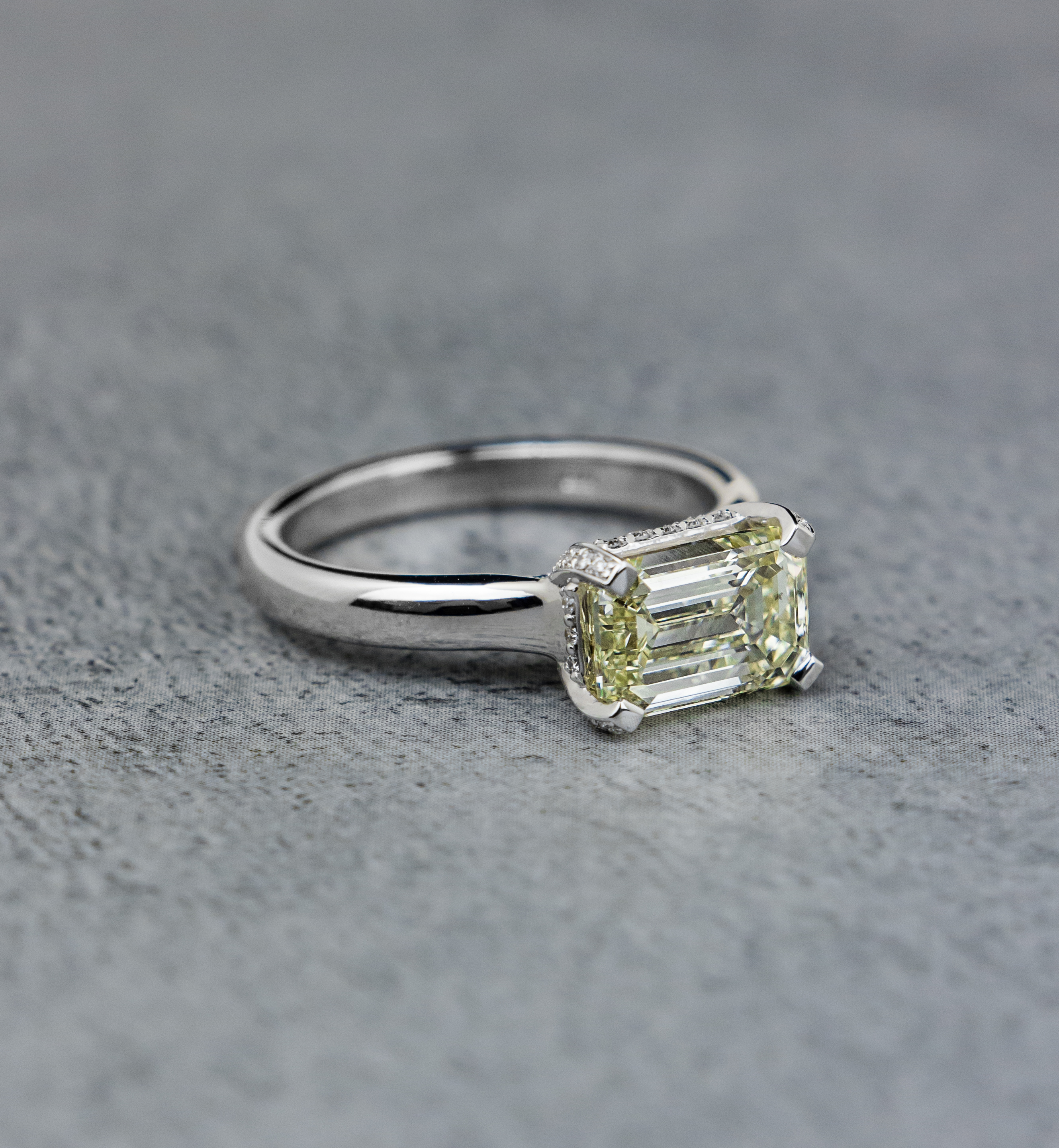 Onze collectie zal u verrassen en versteld doen staan door de verschillende slijpvormen, kleuren en combinaties van diamant. De ontwerpen geven de diamant met haar mysterieuze karakter een eigen identiteit. Laat u meevoeren door onze verhalen bij het zien van onze, niet alledaagse collectie en wellicht vindt u de ring die uw eigen identiteit weerspiegelt.