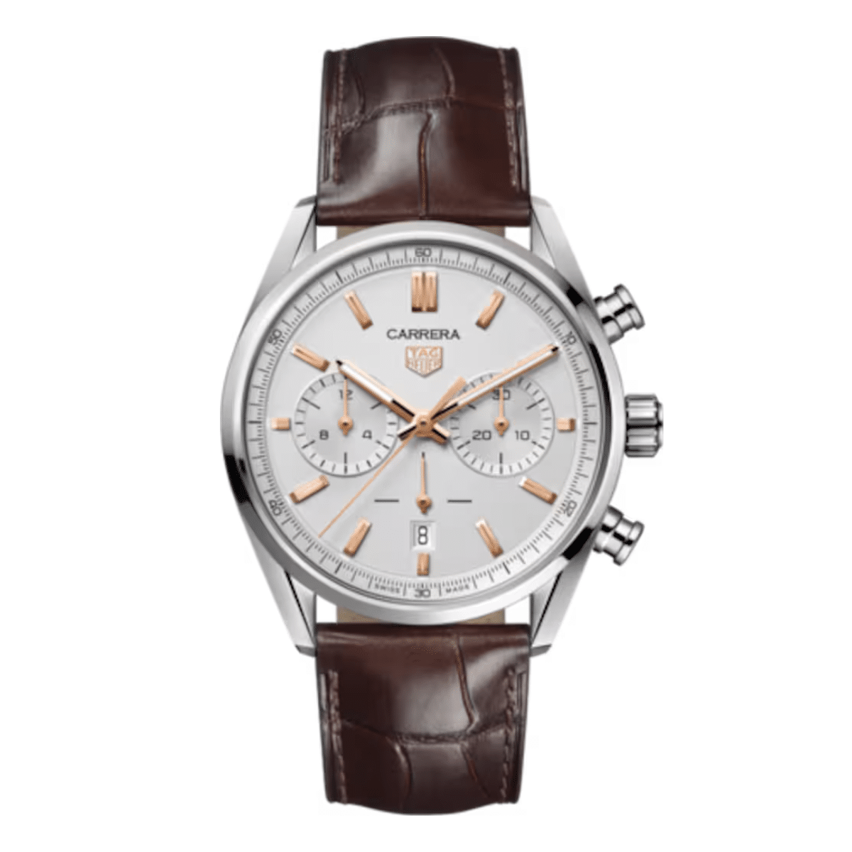 De Carrera-collectie van TAG Heuer staat al sinds 1963 symbool voor sportieve elegantie en uitzonderlijke precisie. Ontworpen voor snelheid en geïnspireerd door de autosport, combineert dit model de kracht van Zwitsers vakmanschap met een tijdloos design. De 42 mm kast biedt ruimte voor het geavanceerde Calibre TH20-00 automatische uurwerk en de iconische chronograaffuncties. Subtiele details, zoals de roségoudkleurige accenten en verfijnde wijzerplaat, geven het horloge een moderne en luxueuze uitstraling. Dit model belichaamt perfect de Carrera-filosofie: robuust, elegant en altijd klaar voor topprestaties. TAG Heuer Carrera Chronograph combineert een volledig scala aan chronograaffuncties met het geavanceerde, in-house Calibre TH20-00 Automatic. Dit alles is stijlvol verpakt in de klassieke Carrera-kast, die de perfecte balans vindt tussen sportiviteit en elegantie.